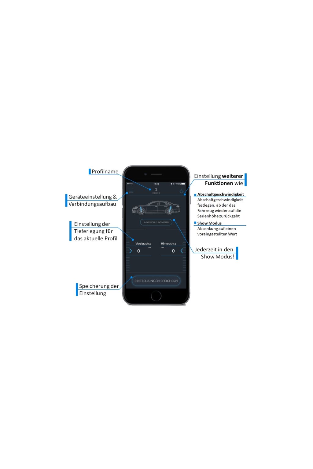 - Plná kontrola přes aplikaci: Umožňuje snadné nastavení výšky odpružení pomocí chytrého telefonu.