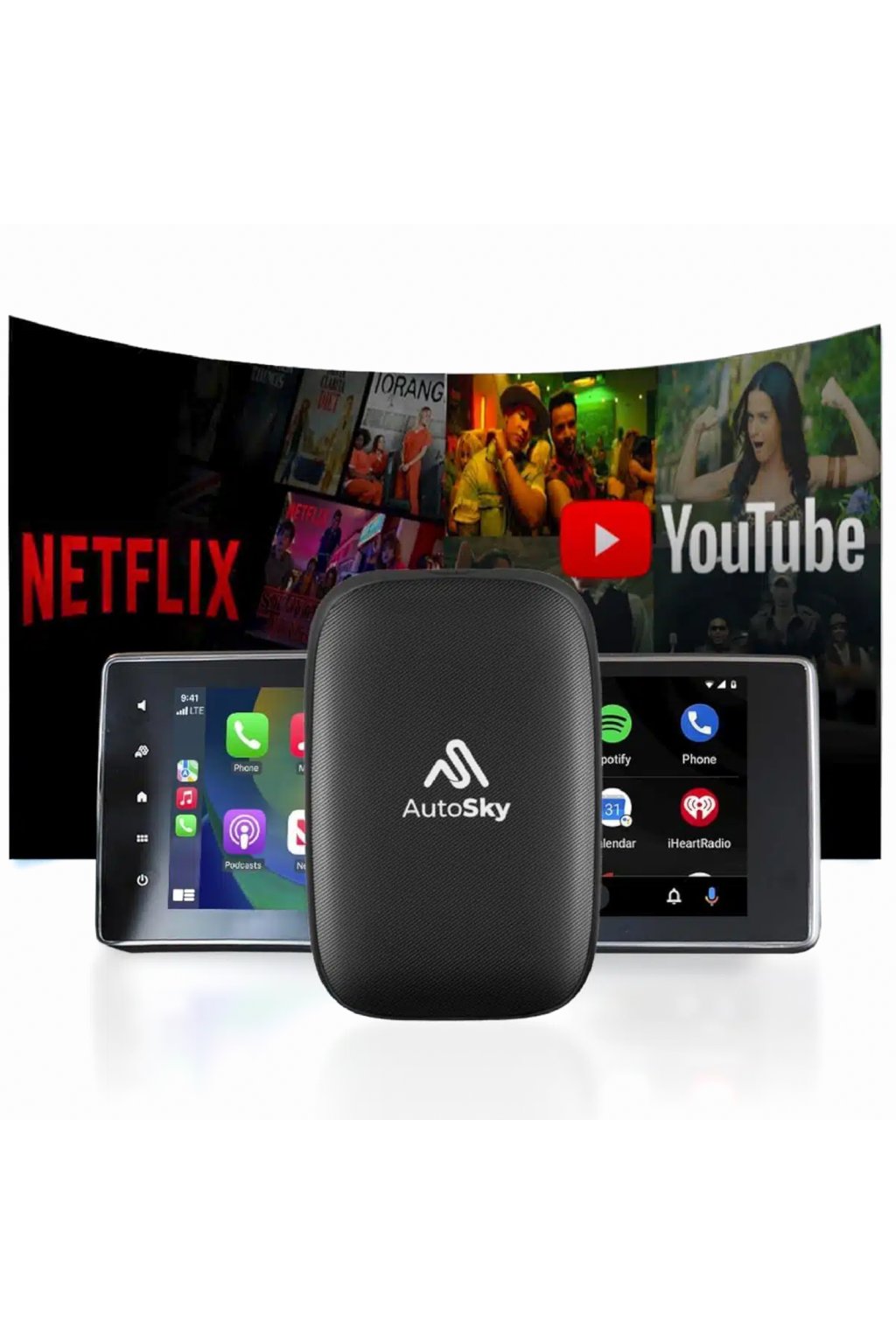 AutoSky USB Box Lite je univerzální bezdrátový adaptér Apple CarPlay & Android Auto, který z kabelového připojení udělá bezdrátové řešení. Navíc rozšiřuje systém o Netflix, YouTube a přehrávání médií z micro SD karty. Rychlá 5GHz Wi-Fi, plug & play instalace a široká kompatibilita s vozy od roku 2016. 🚗📱🎬
