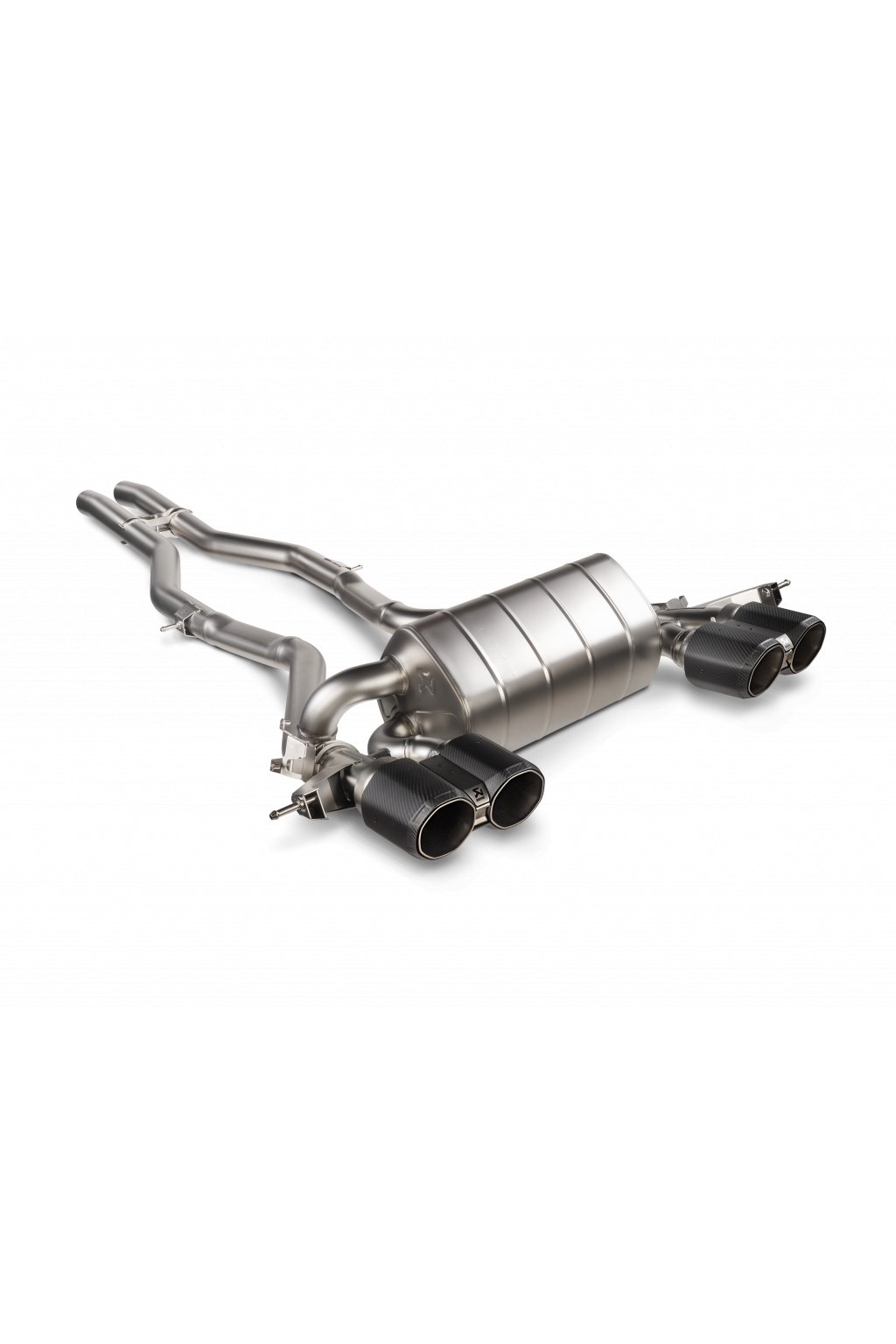 Tento špičkový titanový koncový díl výfuku zakončený řemeslně zpracovanými koncovkami výfuku snižuje váhu výfukového systému o 35 % v porovnání se sériovým systémem a zahrnuje pár kolektorů odlitých ve vlastní slévárně Akrapovič. Slip-On Line (Titan) přichází s nově vyvinutou jednotkou Akrapovič control kit pro skvělý zvukový zážitek. Systém produkuje příjemný plný zvuk při běžné jízdě, který přechází do hlubokého sportovního soundu, pokud M3 řídíte více dynamicky. Zaručuje perfektní zvuk v každých otáčkách spojující komfort a sportovnost v jednom výfuku. Úžasné koncovky s oktagonálním tvarem perfektně doplňujícím tvary vozu jsou vyrobeny z lehkého titanu s karbonovými vnějšími pouzdry, pro konzervativnější zákazníky jsou k dispozici také koncovky s typickým kulatým průřezem Akrapovič.