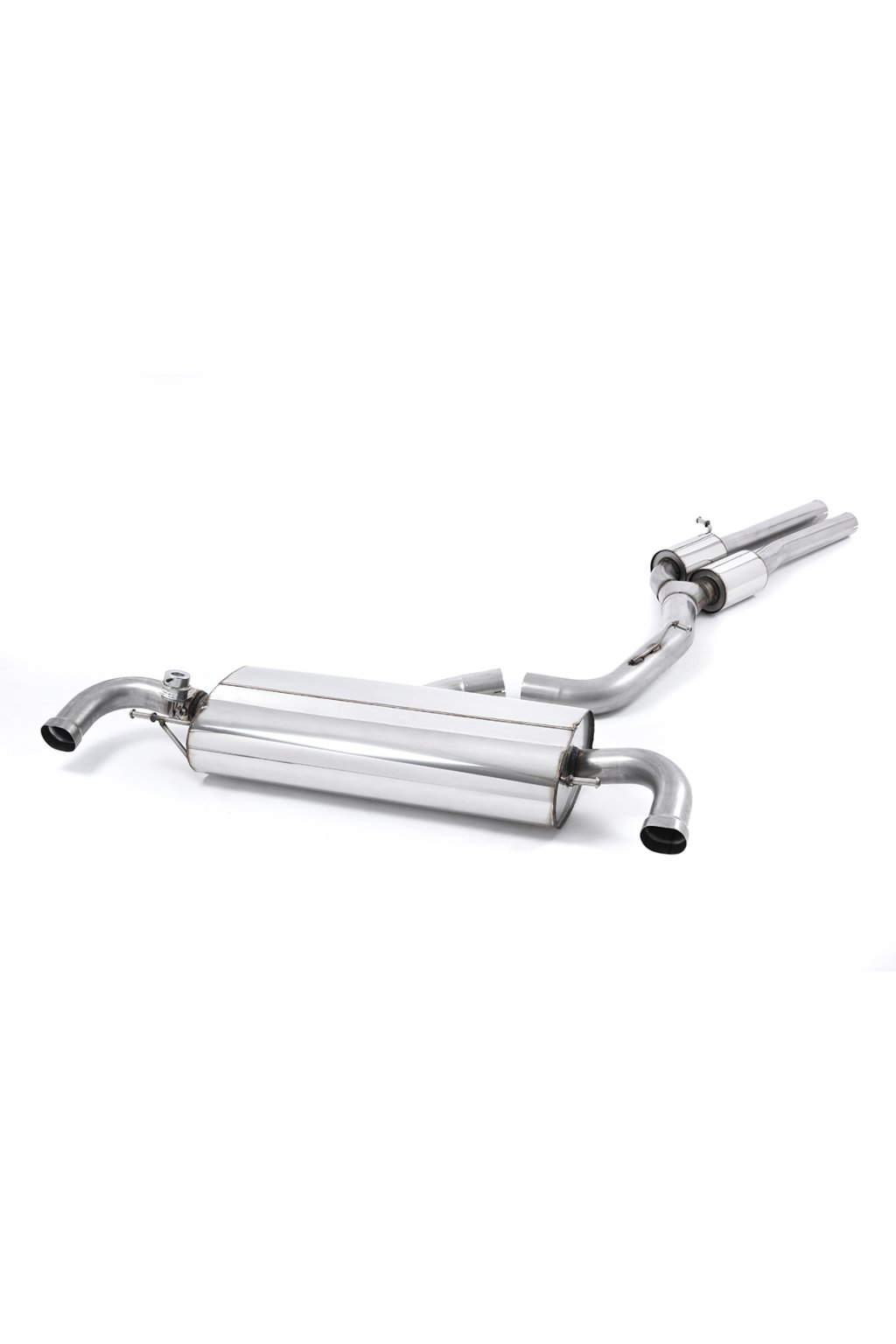 Racing Cat-back: Resonated (quieter). No ECU tuning required uses OE Tips and includes Active Exhaust Valve (works with Sport button to release extra sound when required)