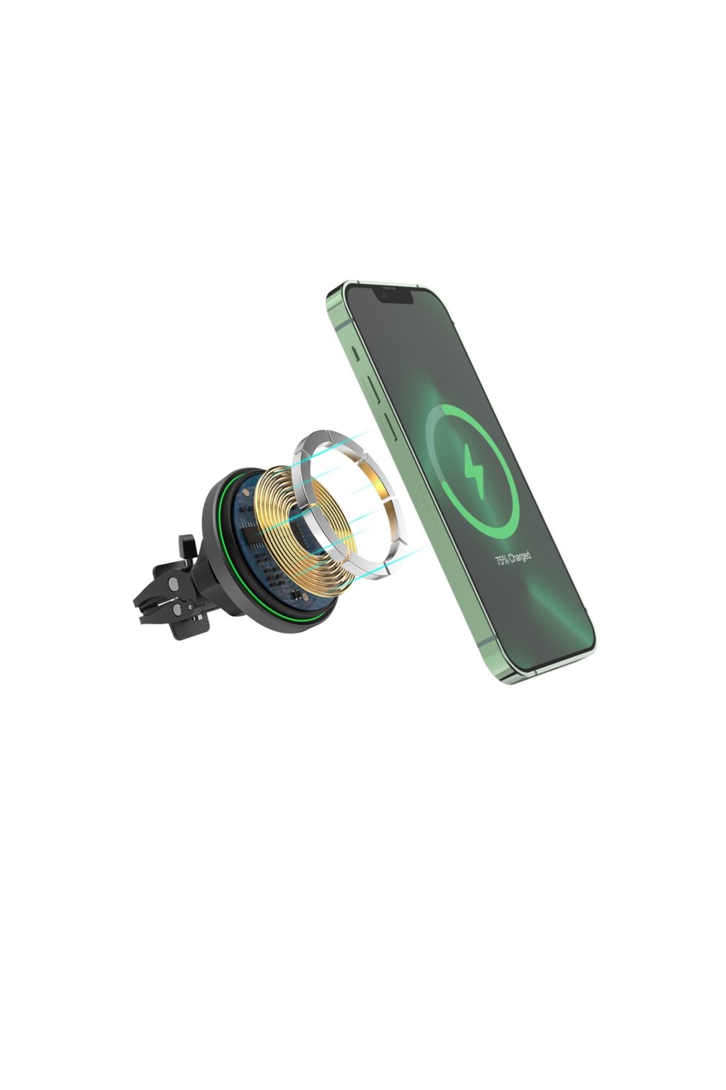 Silný magnet udrží telefon pevně na místě i na rozbitých silnicích a zajistí rychlé nabíjení až 15 W – bez kabelů, bez starostí.