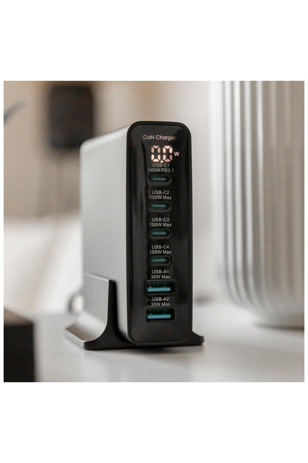 4× USB-C, 2× USB-A, PD 3.1 až 140 W z jednoho portu a přehledný LCD displej. Jedna nabíječka na všechno. 🔌✨