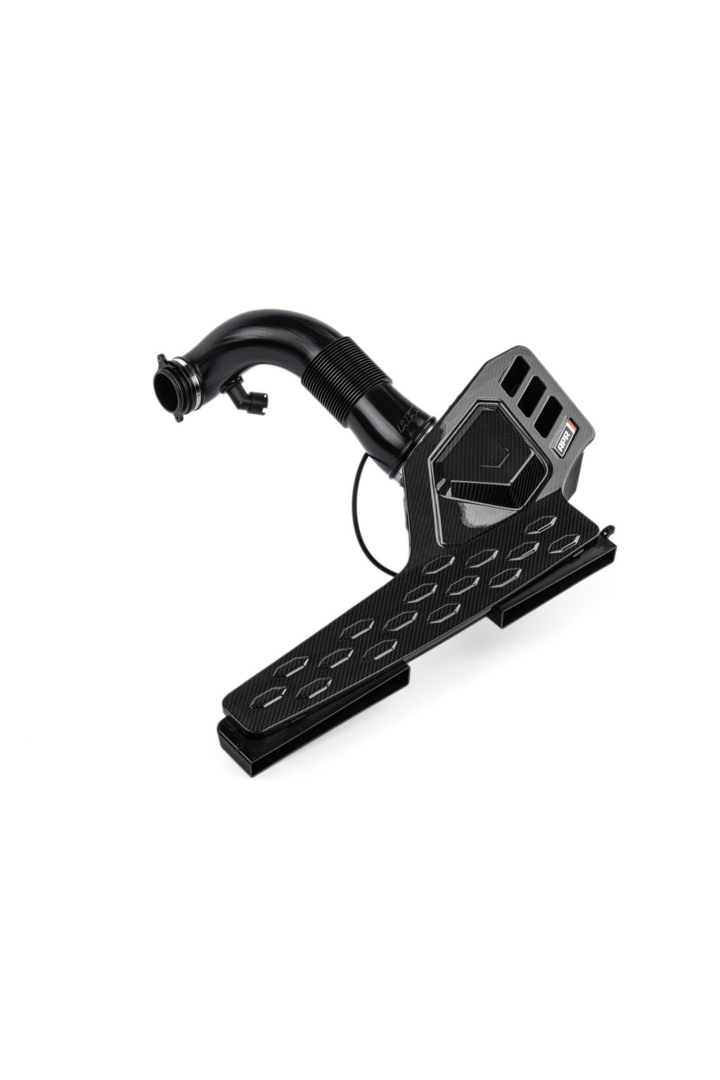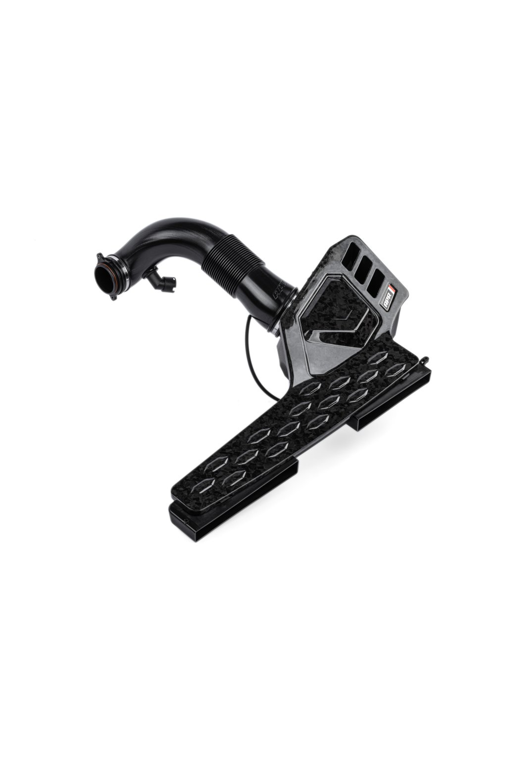 The system is fully configurable and can be used as an open or closed intake, with an OEM-style cover or optional carbon fiber covers available in twill or forged carbon.