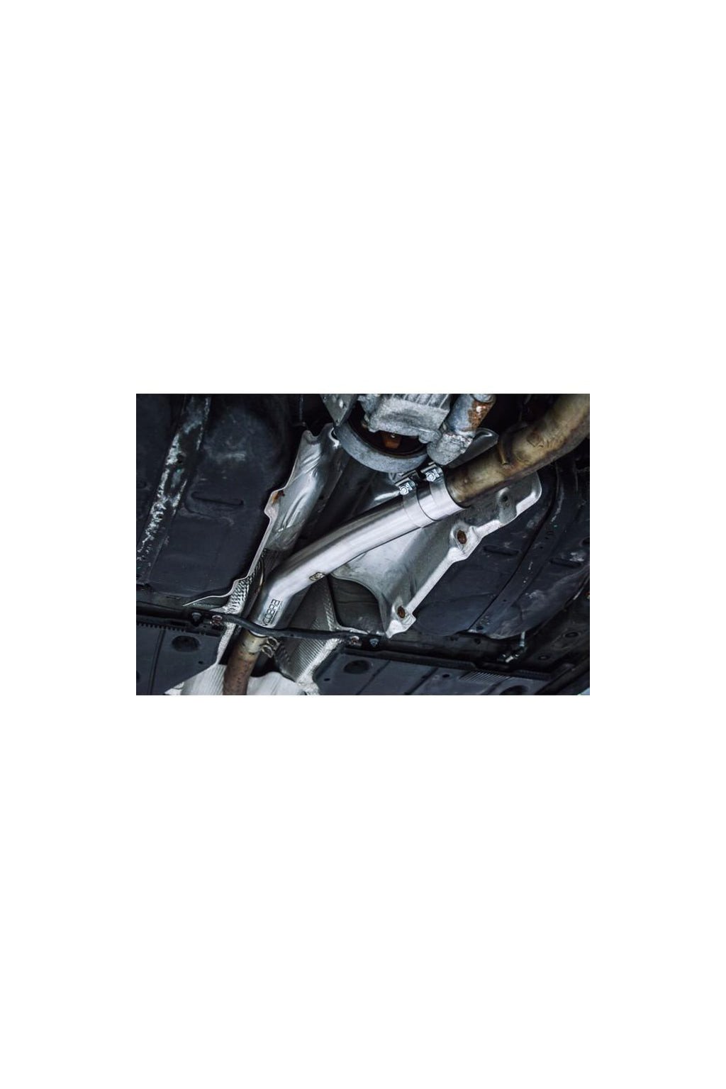 Výfuk je vyroben z nerezové oceli o průměru 2,75"/69,9 mm a nahrazuje středový rezonátor/tlumič výfuku, což umožňuje plynulejší průtok plynů pro zlepšení výkonu a výrazně lepší tón výfuku.