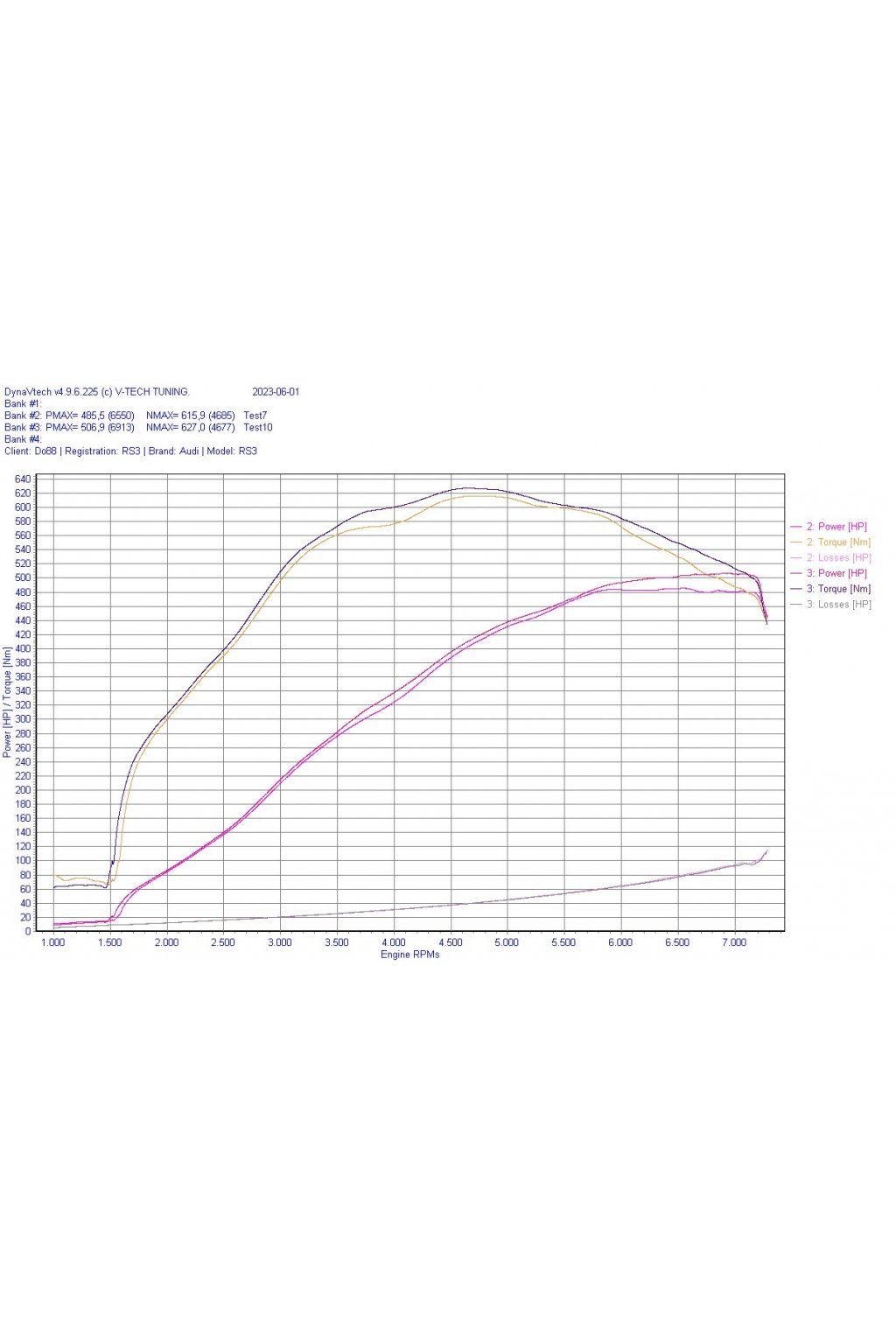 - Nárůst až o +25 koní / +25 Nm na vozidle ve fázi 1 (motor Audi RS3 8V DAZA).