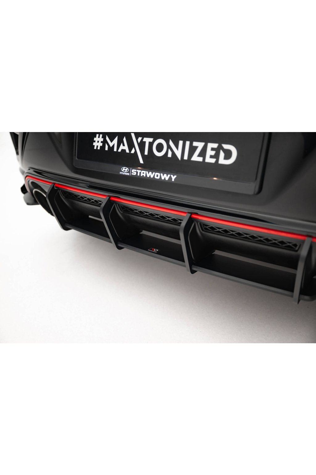 Maxton Design "Street Pro" difuzor zadního nárazníku pro Hyundai Veloster N Mk2, plast ABS bez povrchové úpravy, s černou a červenou linkou