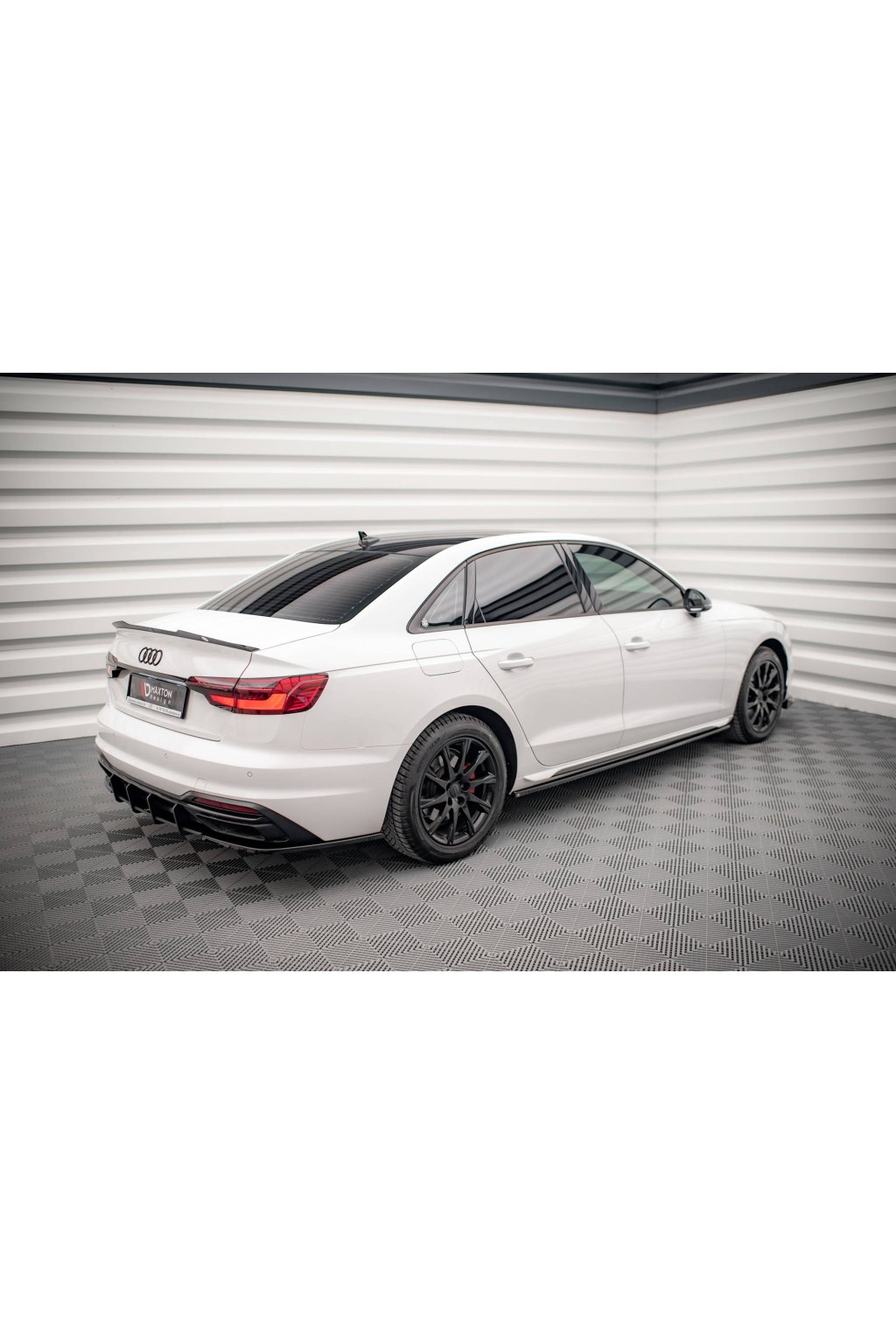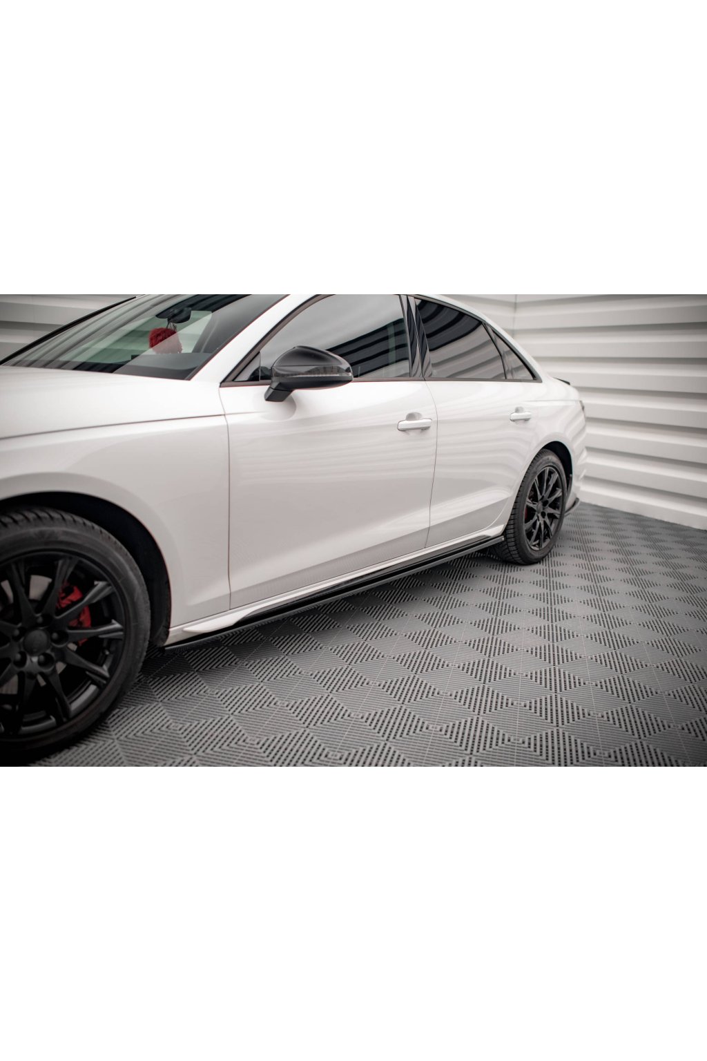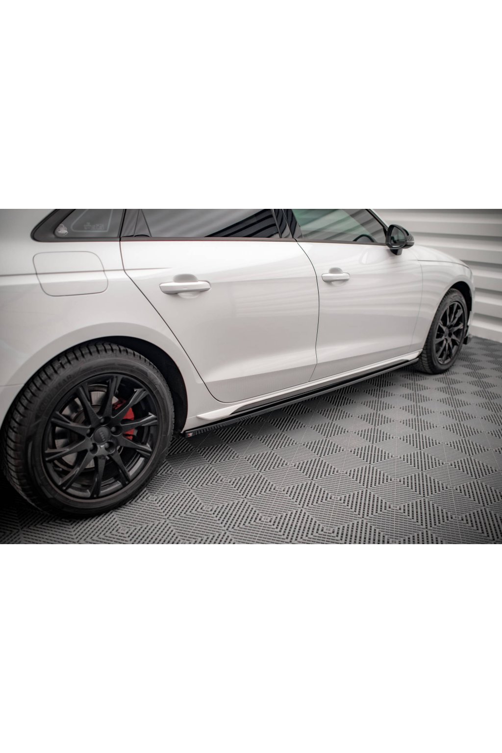 Maxton Design difuzory pod boční prahy pro vozidlo Audi A4 B9 FL . Povrchová úprava spoileru černý lesklý plast ABS.