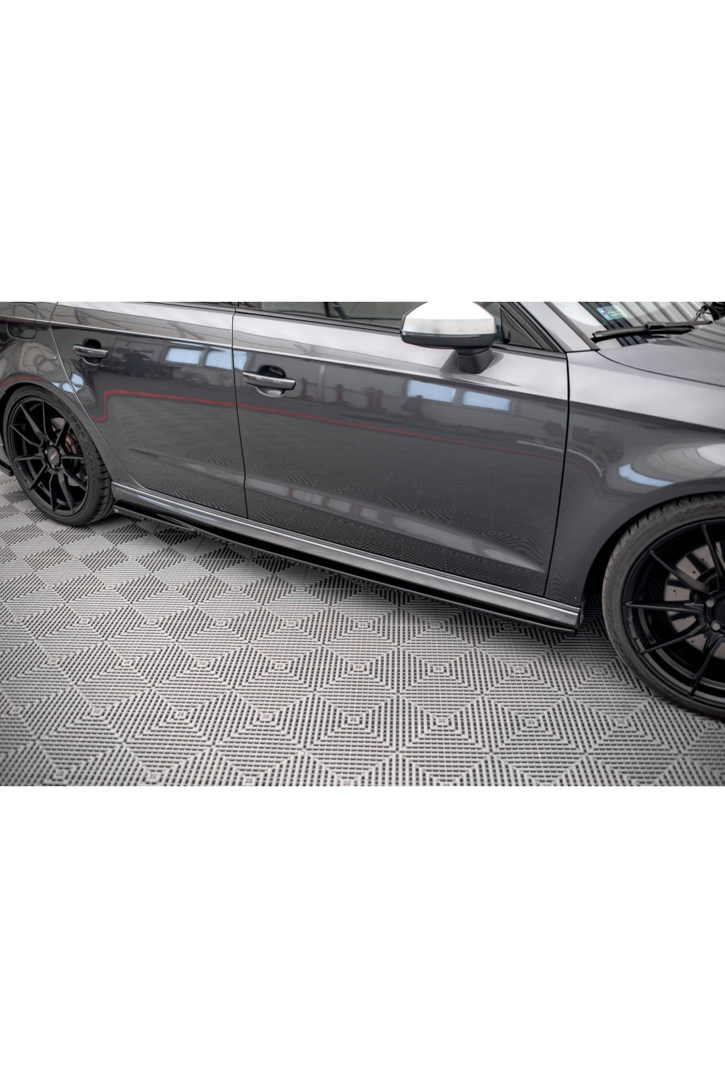 Maxton Design difuzory pod boční prahy pro vozidlo Audi S3 8V FL . Povrchová úprava spoileru černý lesklý plast ABS.
