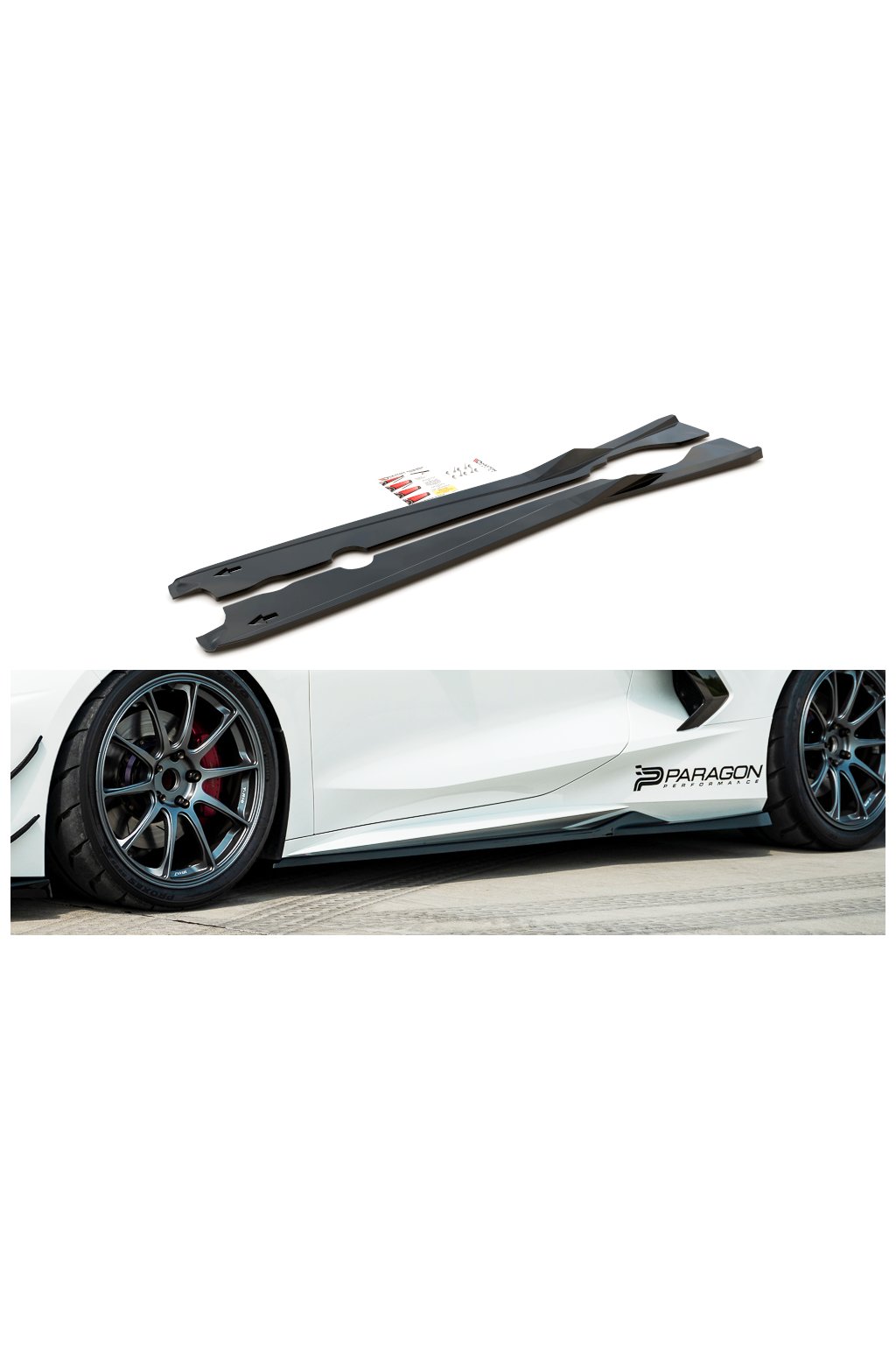 Maxton Design difuzory pod boční prahy pro vozidlo Chevrolet Corvette C8 . Povrchová úprava spoileru černý lesklý plast ABS.
