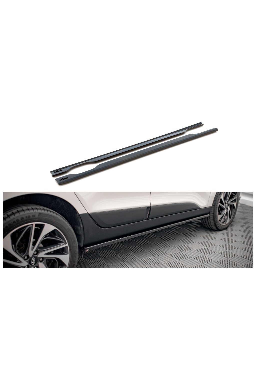 Difuzory bočních prahů Hyundai ix35 Mk1, povrchová úprava černý lesklý plast ABS.