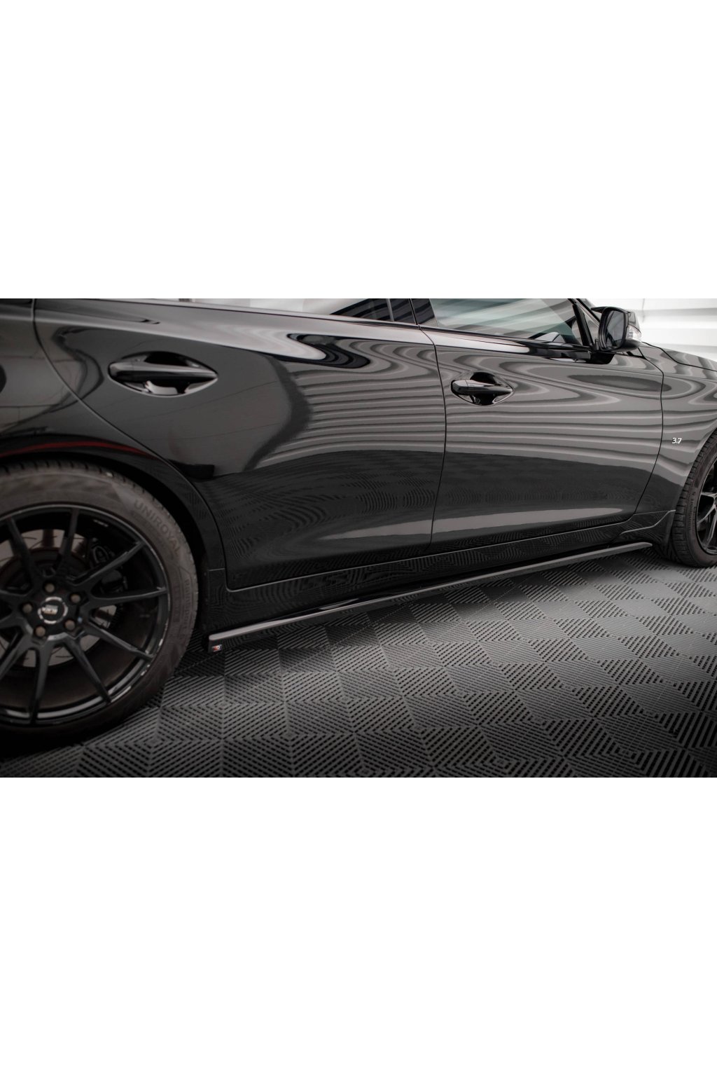 Maxton Design difuzory pod boční prahy pro vozidlo Infiniti Q50 S Mk1 . Povrchová úprava spoileru černý lesklý plast ABS.