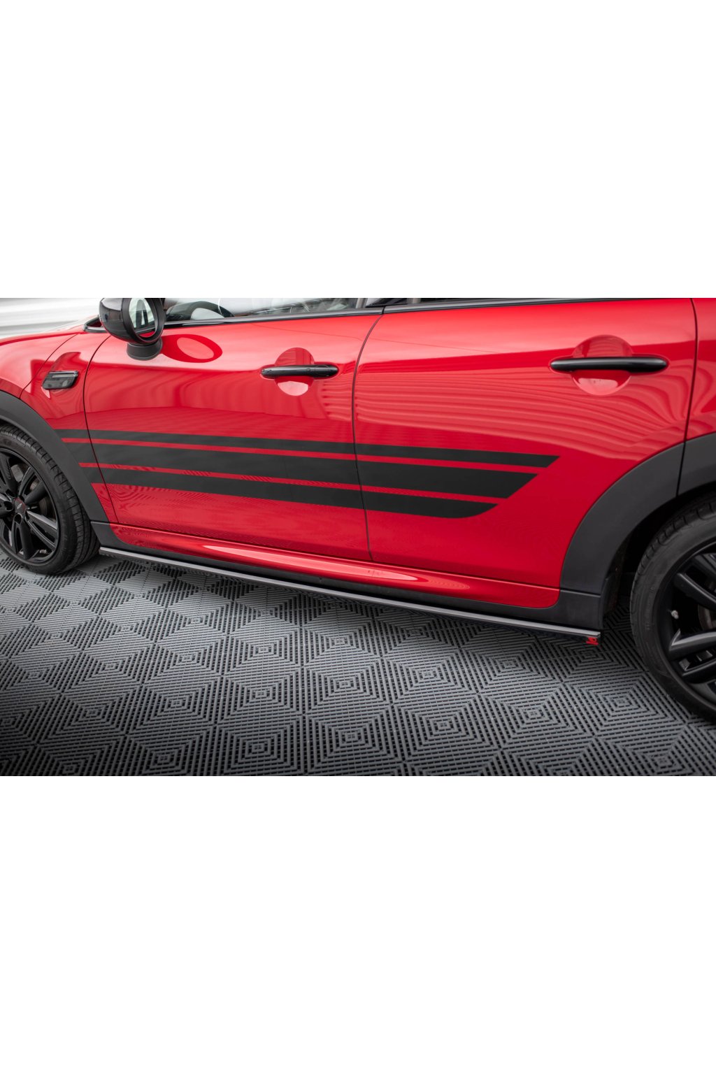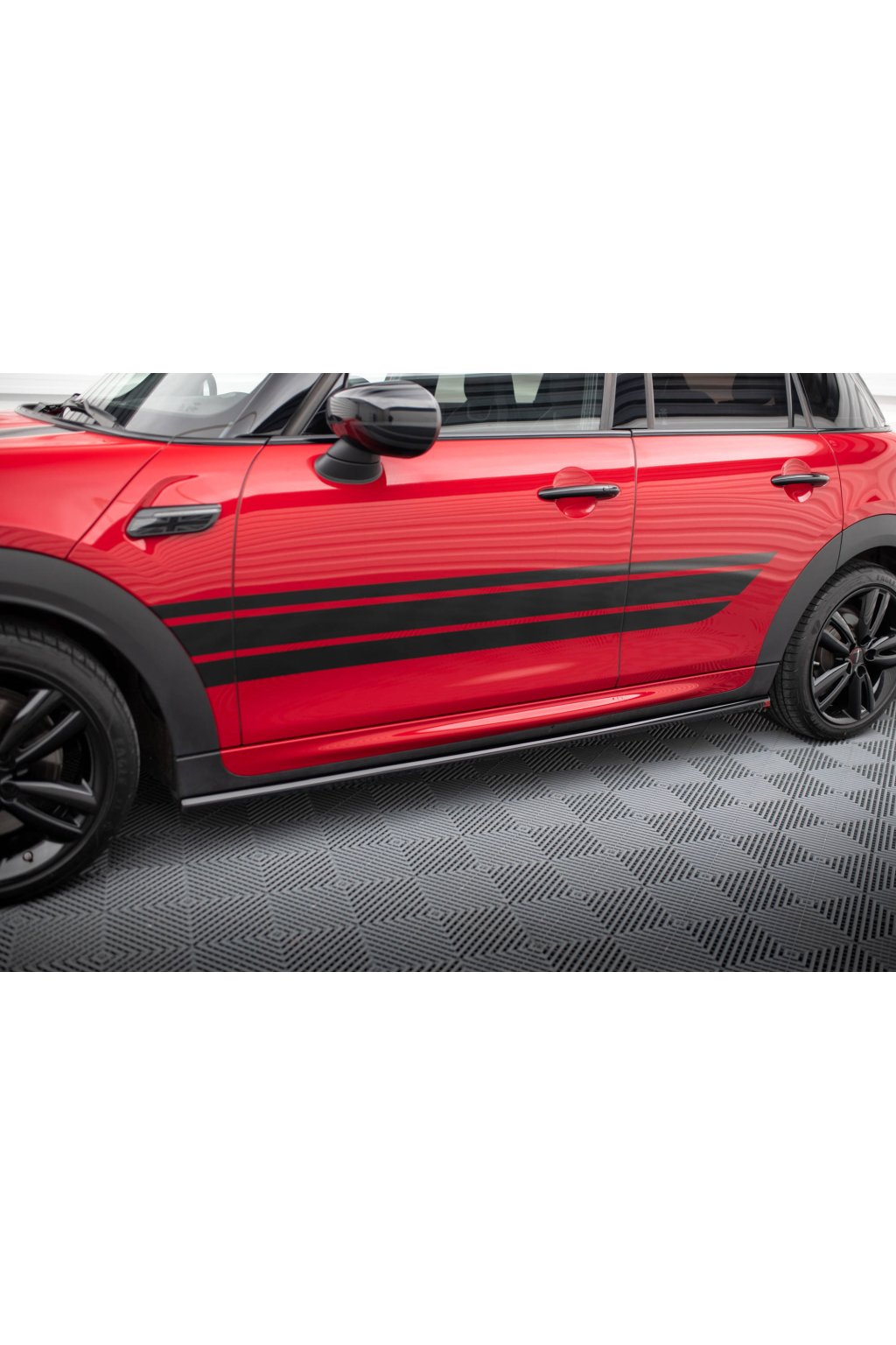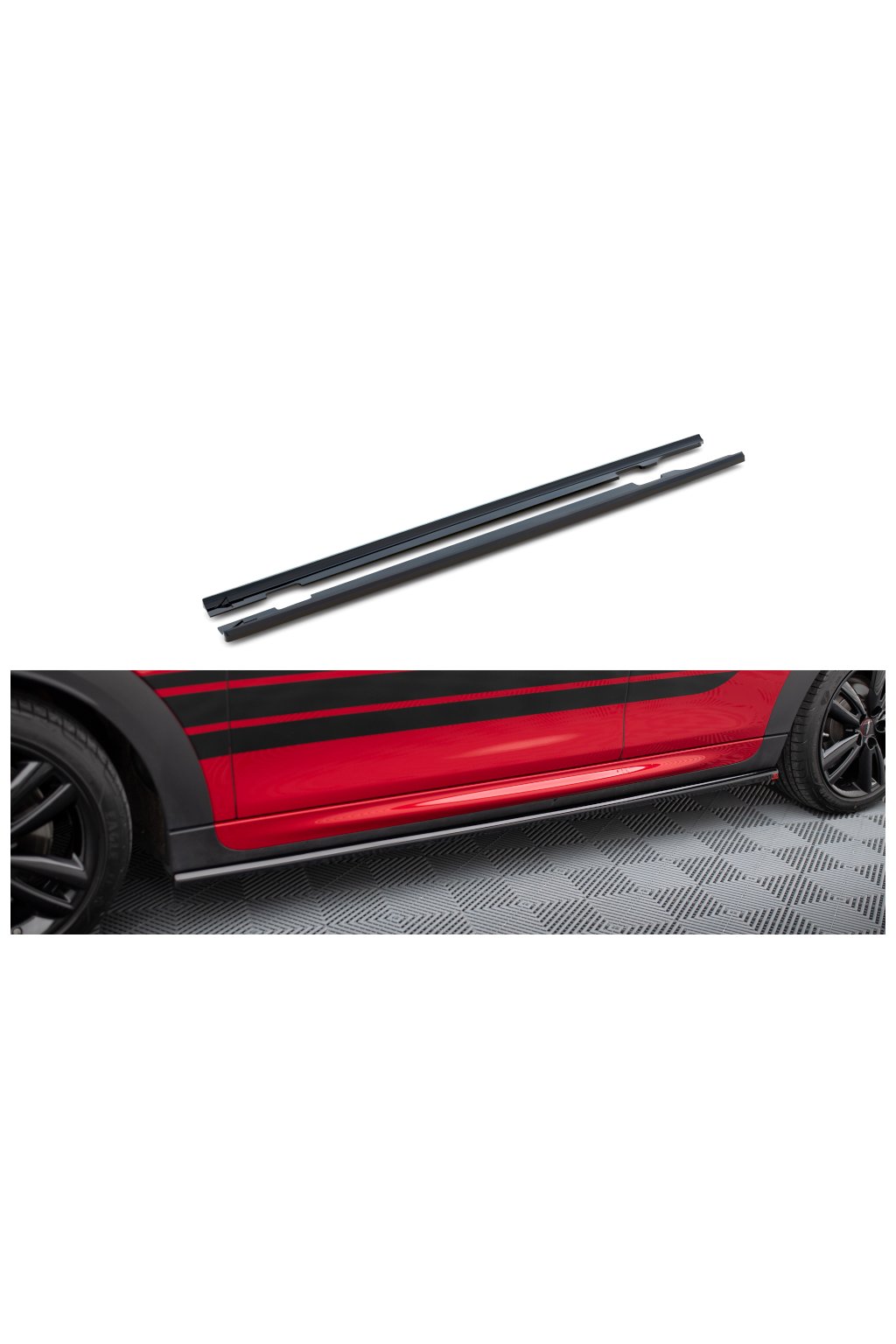 Maxton Design difuzory pod boční prahy pro vozidlo Mini Cooper F56 JCW Facelift . Povrchová úprava spoileru černý lesklý plast ABS.