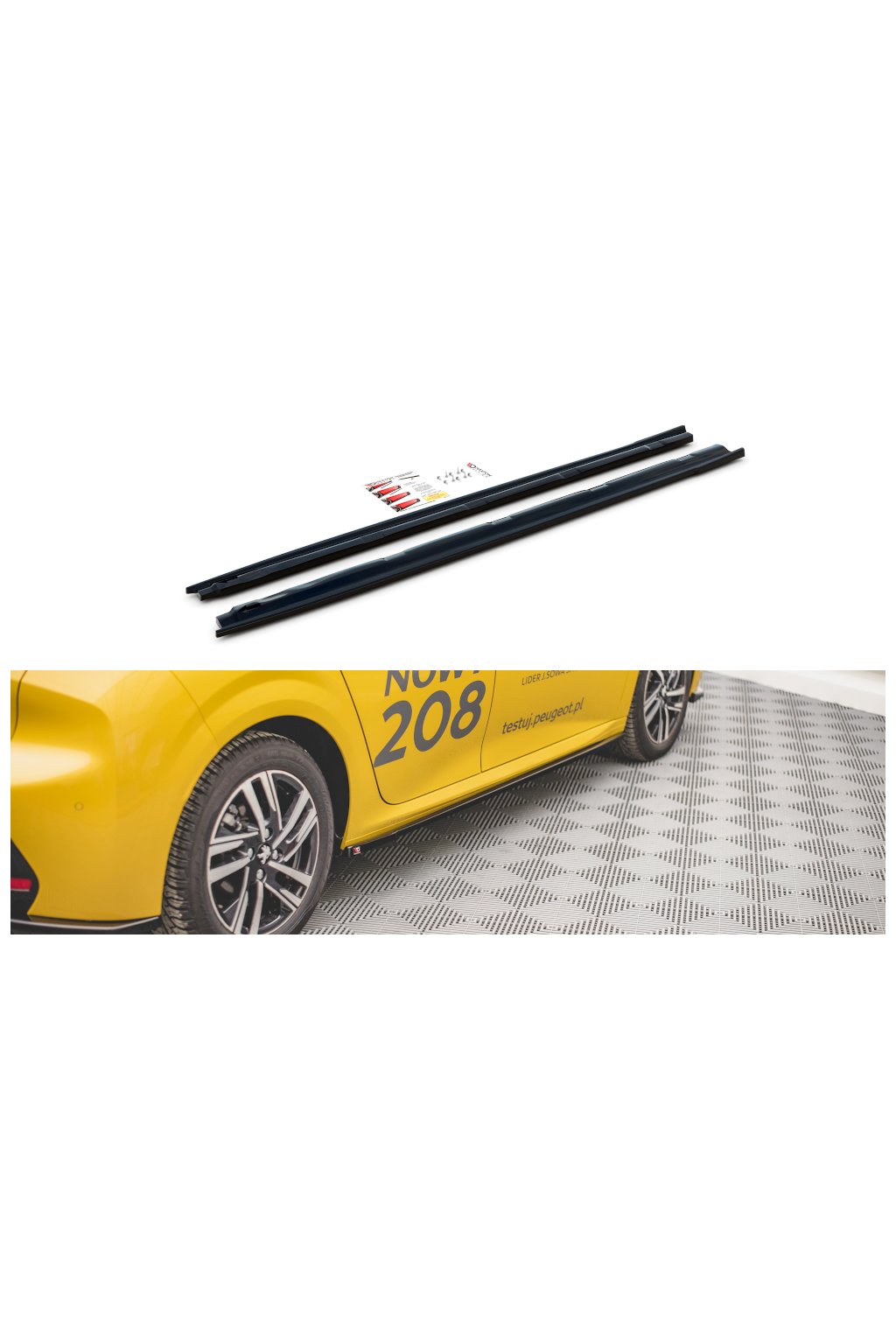 Maxton Design difuzory pod boční prahy pro vozidlo Peugeot 208 Mk2 . Povrchová úprava spoileru černý lesklý plast ABS.