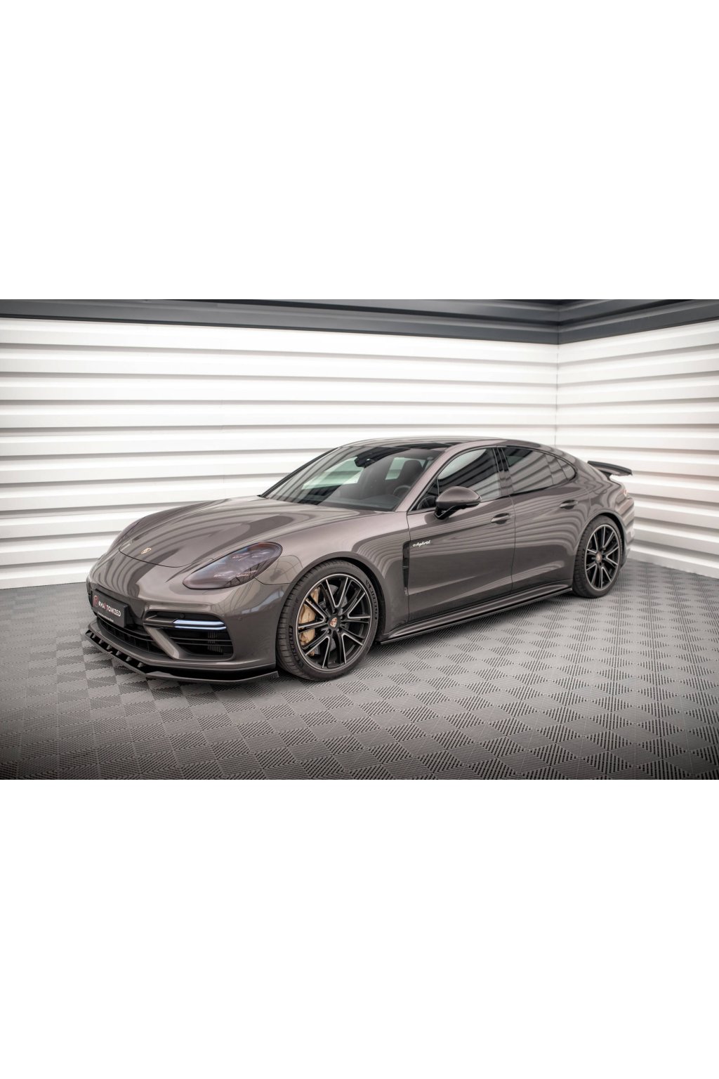 Maxton Design difuzory pod boční prahy pro vozidlo Porsche Panamera 971 E-Hybrid . Povrchová úprava spoileru carbon-Look.