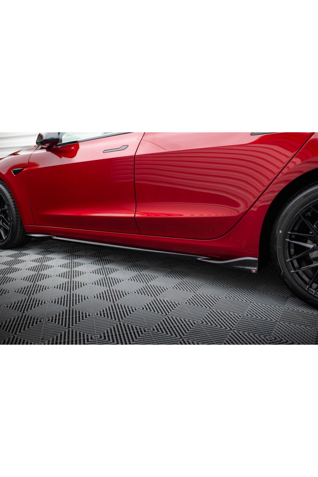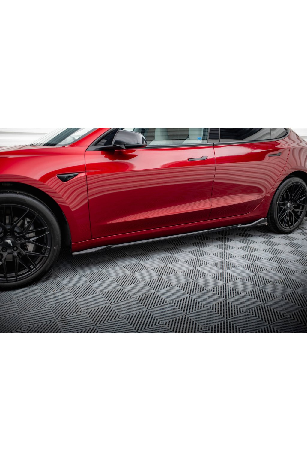 Maxton Design difuzory pod boční prahy pro Tesla Model 3 Mk1 Project Highland Facelift, černý lesklý plast ABS