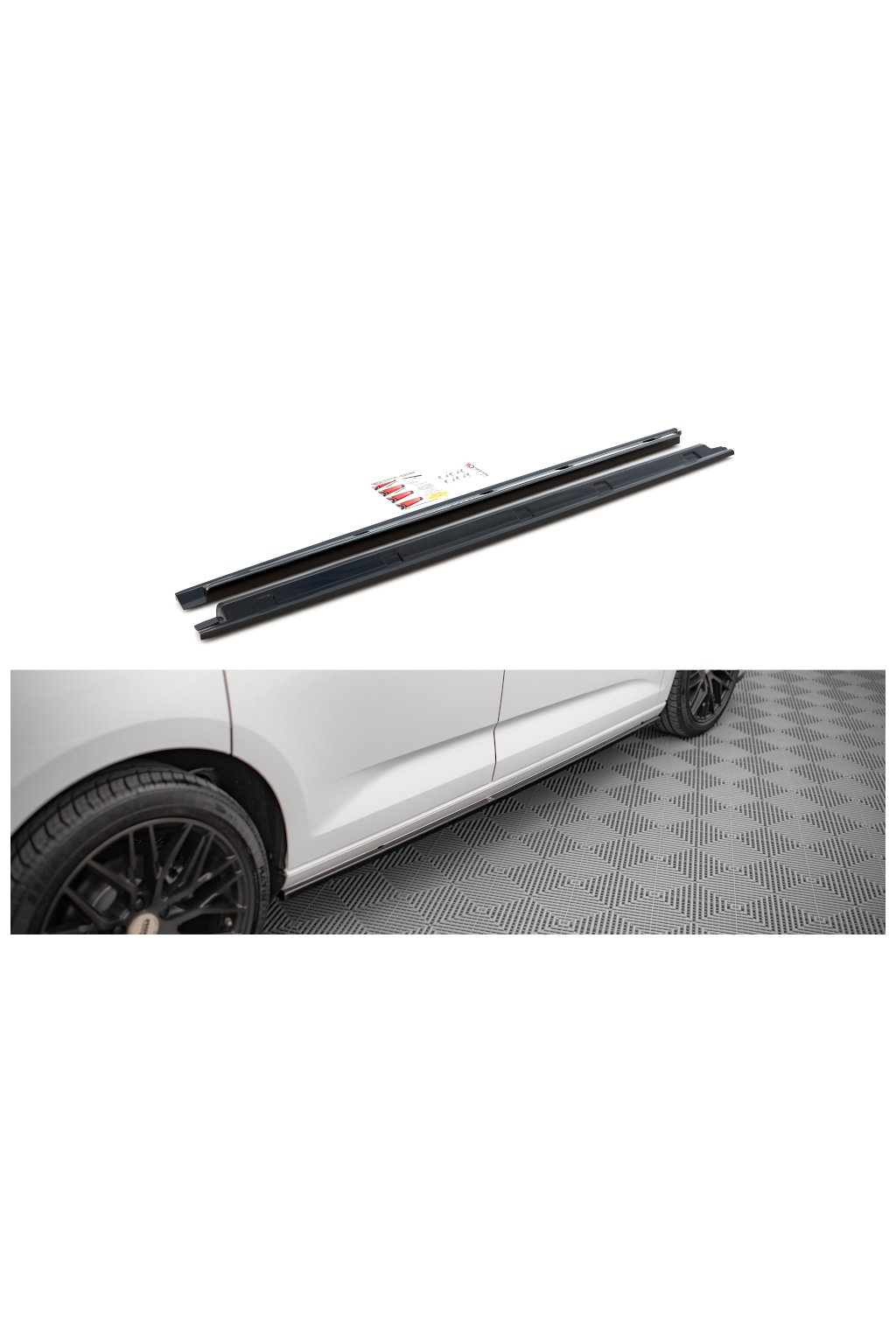 Maxton Design difuzory pod boční prahy pro vozidlo Volkswagen Caddy Mk5 . Povrchová úprava spoileru černý lesklý plast ABS.