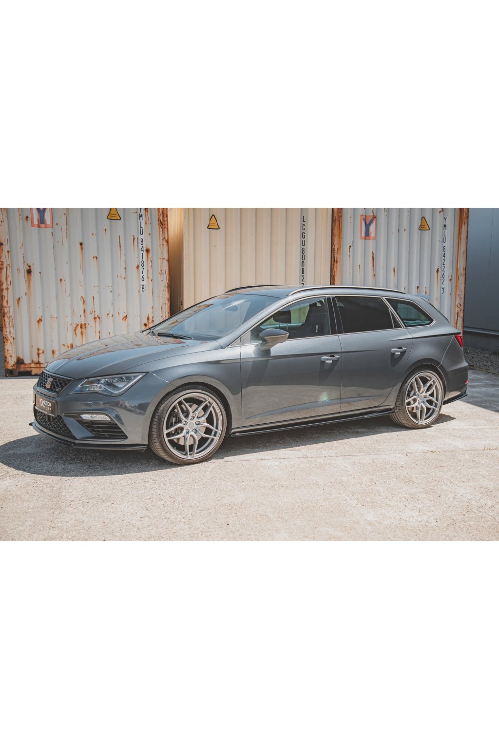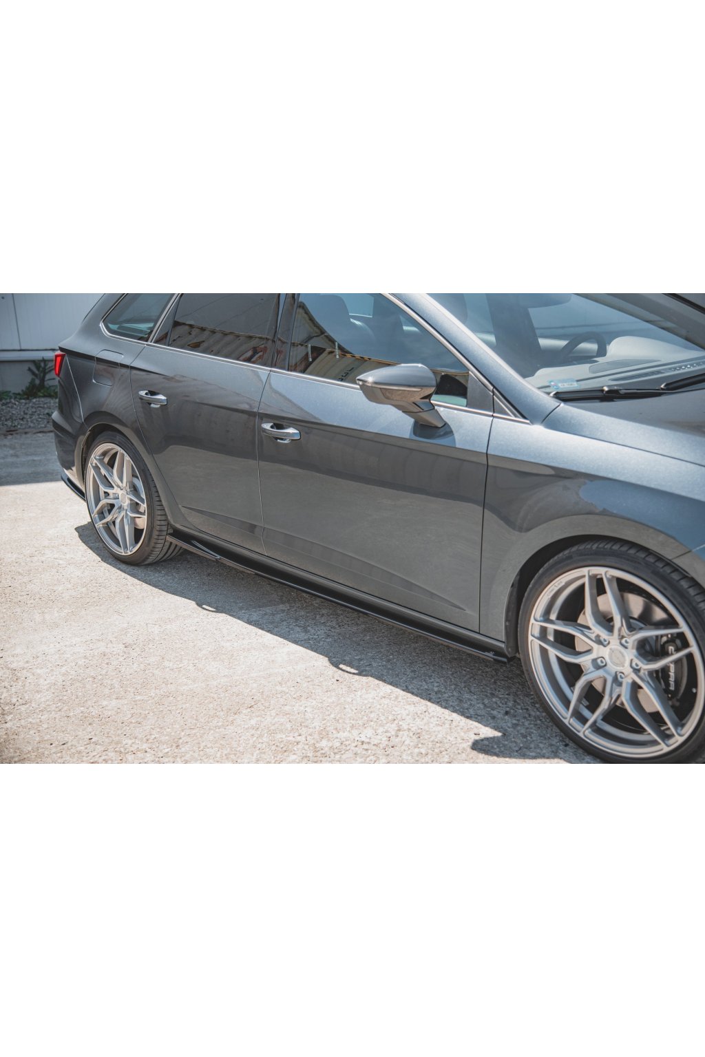 Maxton Design difuzory pod boční prahy ver.5 pro vozidlo Seat Leon Cupra Mk3 Facelift. Povrchová úprava spoileru černý lesklý plast ABS.