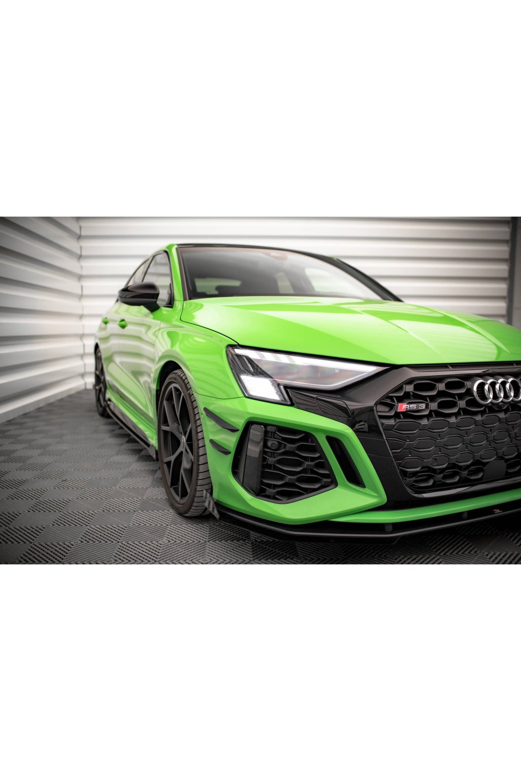 Maxton Design přítlačná křidélka předního nárazníku pro vozidlo Audi RS3 8Y. Produkt vyrobený na 3D tiskárně.