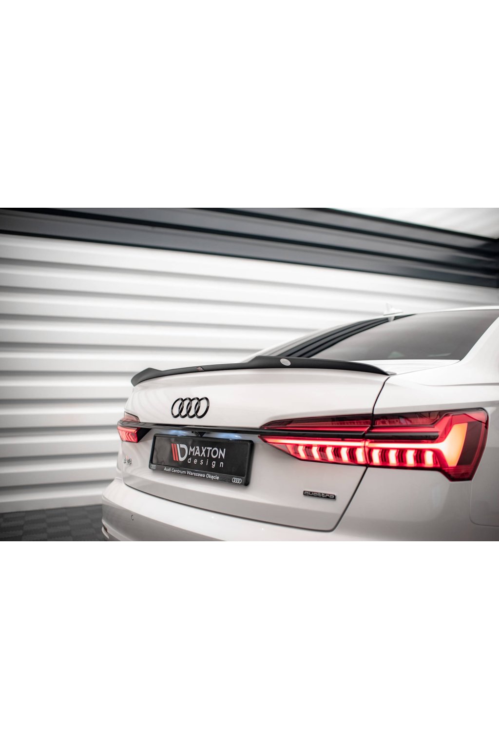 Maxton Design prodloužení spoileru pro vozidlo Audi A6 C8 . Povrchová úprava spoileru carbon-Look.