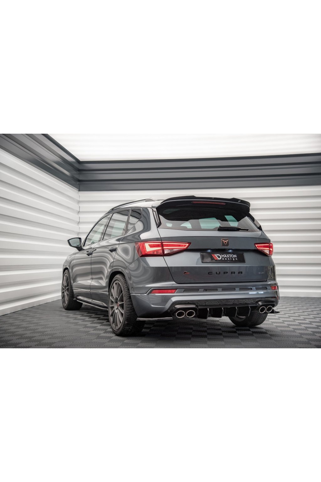 Maxton Design prodloužení spoileru pro vozidlo Cupra Ateca . Povrchová úprava spoileru carbon-Look.