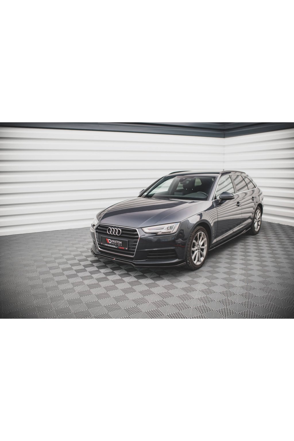 Maxton Design spoiler pod přední nárazník pro vozidlo Audi A4 B9 . Povrchová úprava spoileru černý lesklý plast ABS.