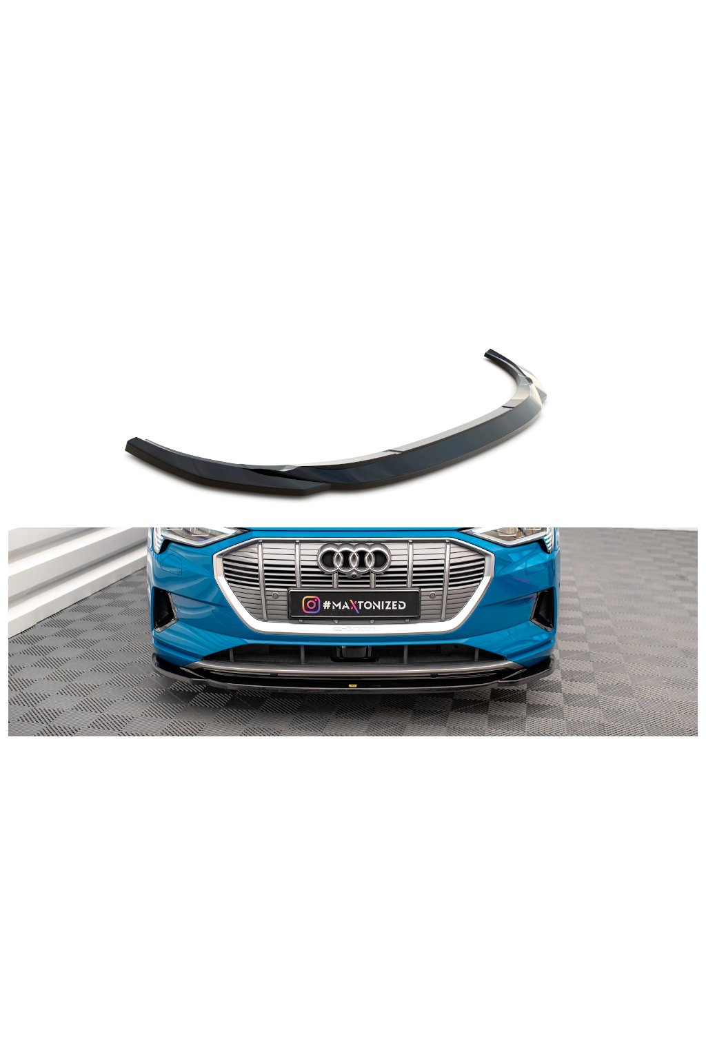 Maxton Design spoiler pod přední nárazník pro vozidlo Audi E-Tron . Povrchová úprava spoileru carbon-Look.