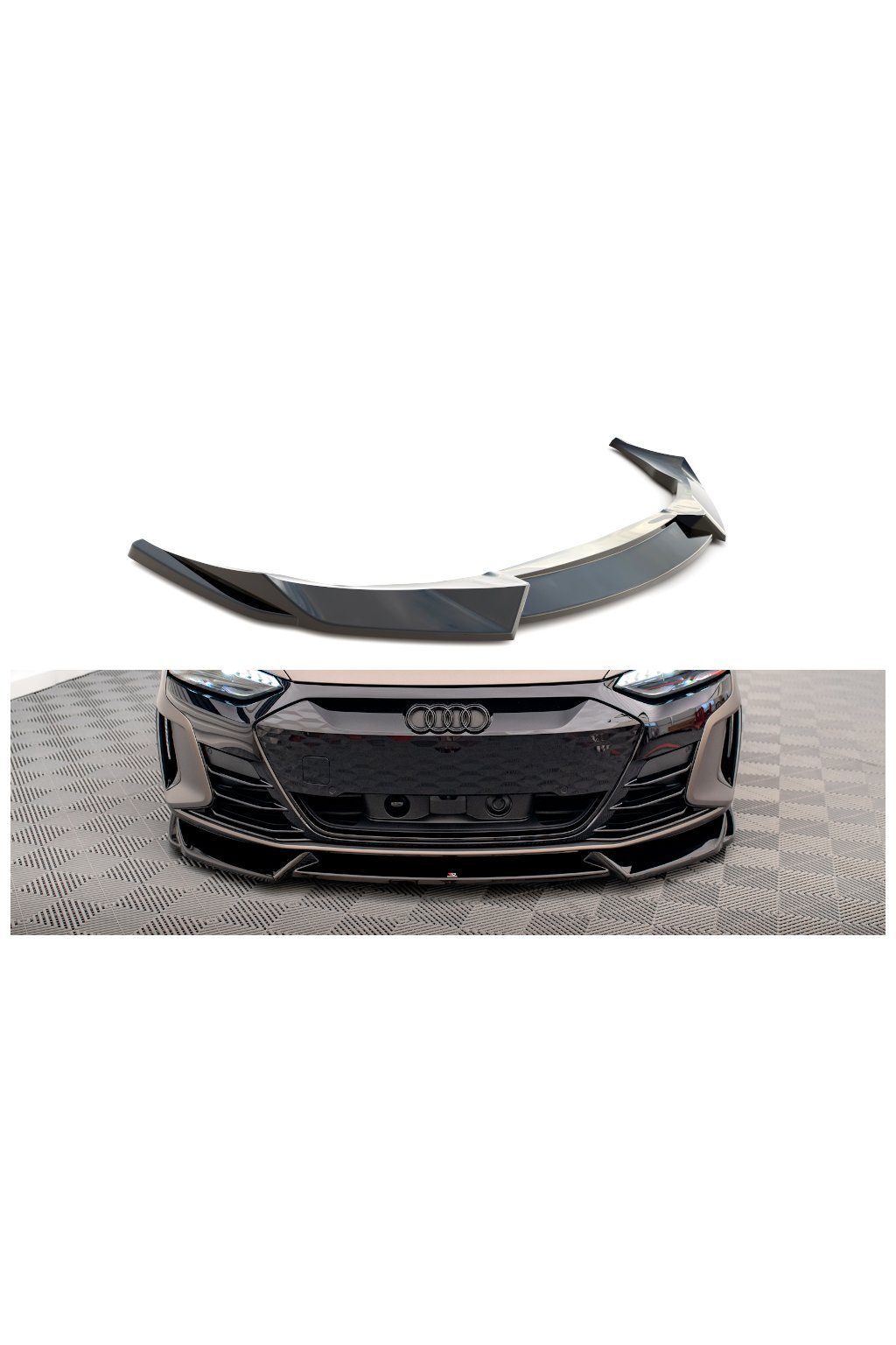 Maxton Design spoiler pod přední nárazník pro vozidlo Audi e-tron GT / RS GT Mk1 . Povrchová úprava spoileru černý lesklý plast ABS.