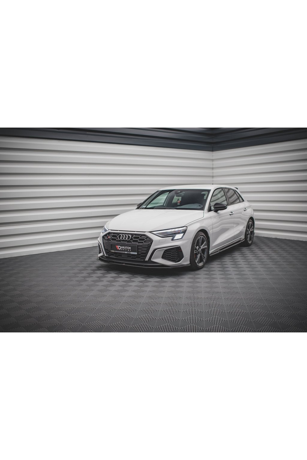 Maxton Design spoiler pod přední nárazník pro vozidlo Audi S3 8Y . Povrchová úprava spoileru černý lesklý plast ABS.