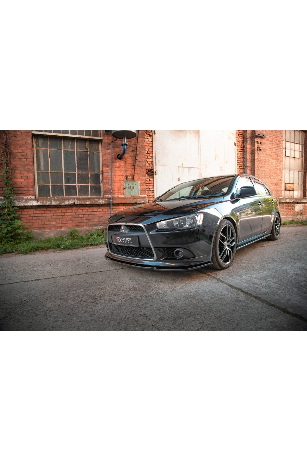 Maxton Design spoiler pod přední nárazník pro vozidlo Mitsubishi Lancer Mk8 . Povrchová úprava spoileru černý lesklý plast ABS.