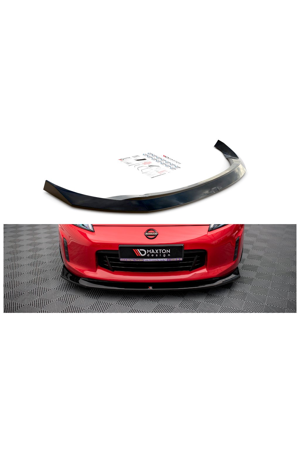 Maxton Design spoiler pod přední nárazník pro vozidlo Nissan 370Z Facelift . Povrchová úprava spoileru černý lesklý plast ABS.