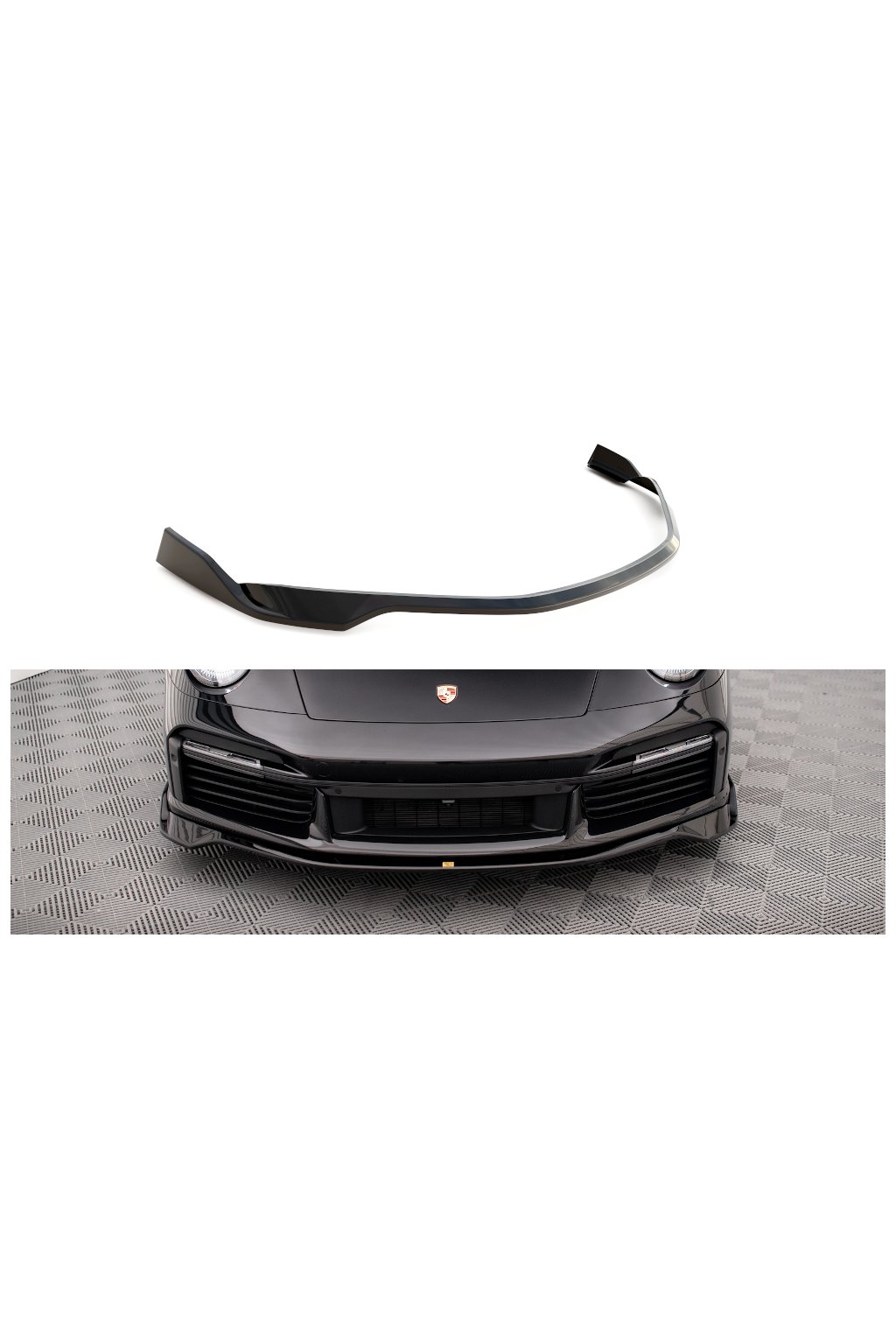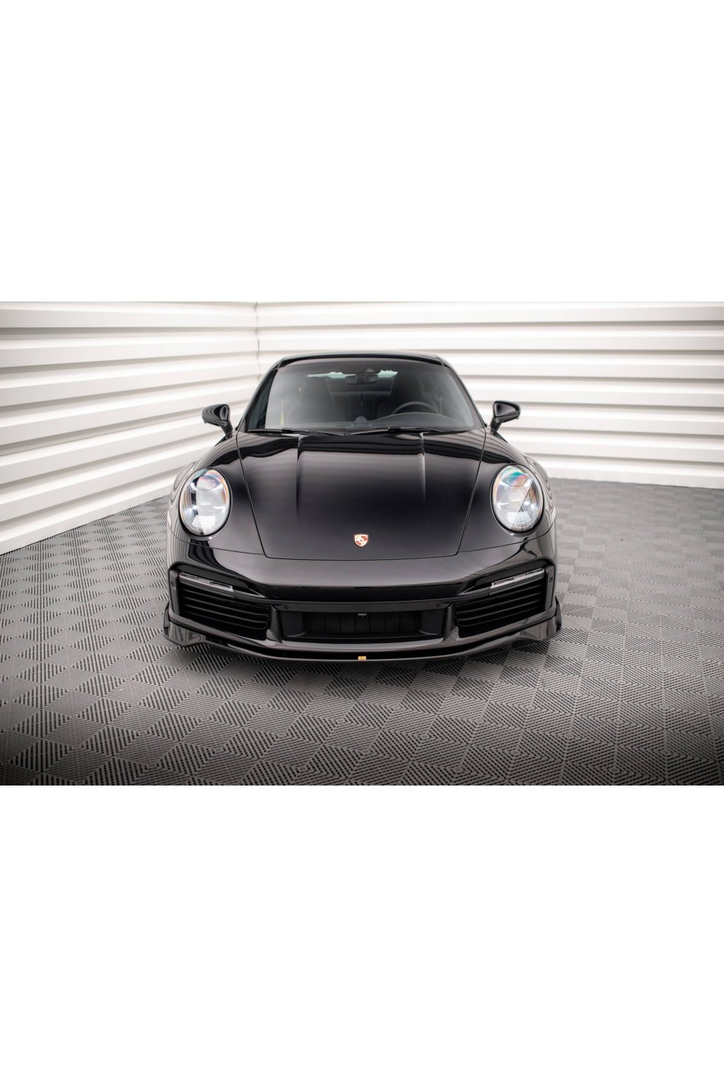 Maxton Design spoiler pod přední nárazník pro vozidlo Porsche 911 992 Turbo S . Povrchová úprava spoileru černý lesklý plast ABS.