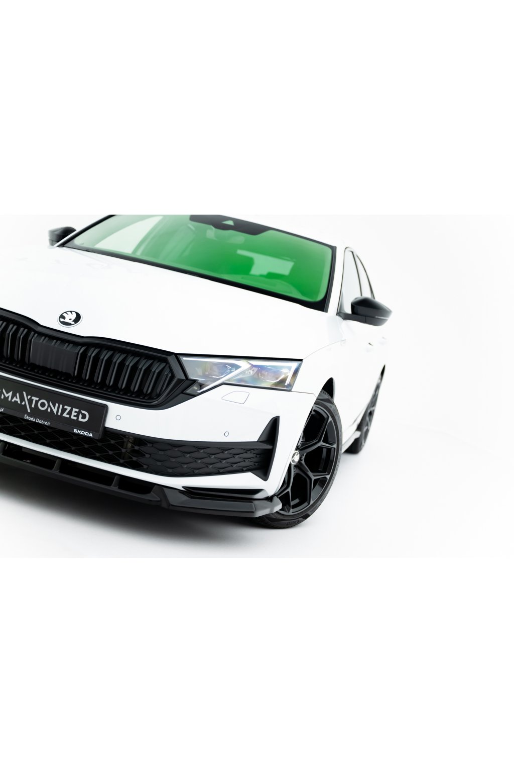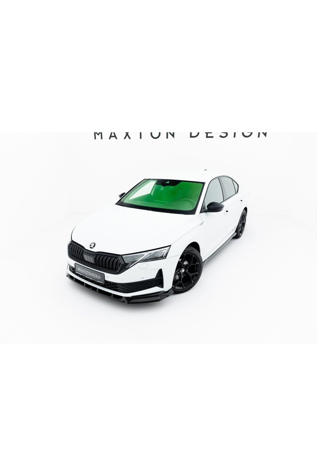 Maxton Design spoiler pod přední nárazník pro Škoda Octavia Mk4 Facelift, černý lesklý plast ABS, Sportline Liftback / Sportline Combi