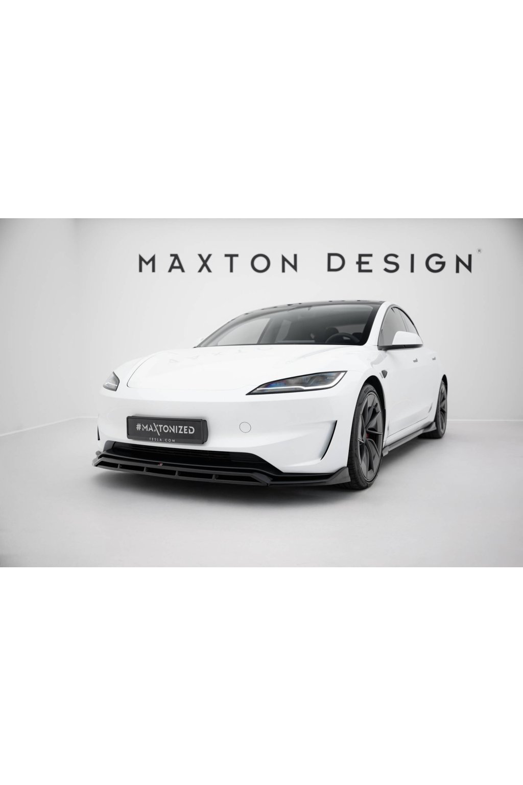 Maxton Design spoiler pod přední nárazník pro Tesla Model 3 Mk1 Project Highland Facelift, černý lesklý plast ABS, Performance