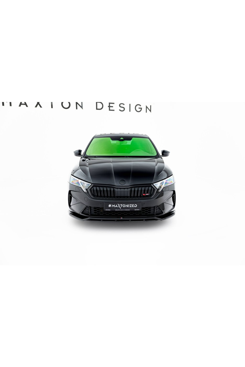 Maxton Design spoiler pod přední nárazník ver.1 pro Škoda Octavia RS Mk4 Facelift, černý lesklý plast ABS, Liftback / Combi