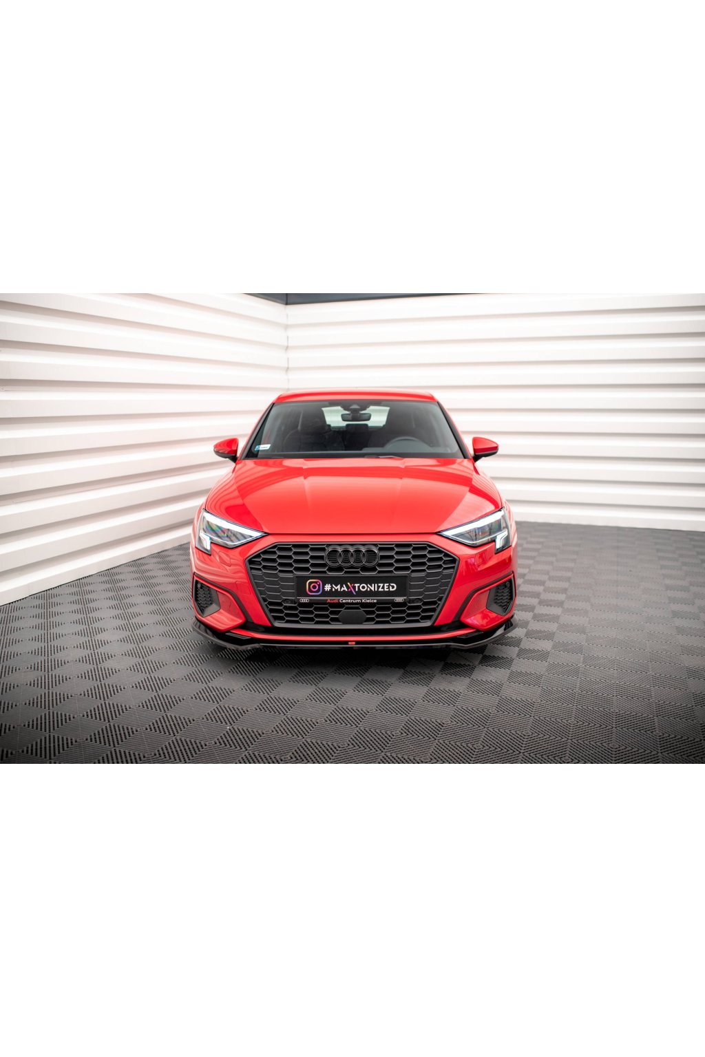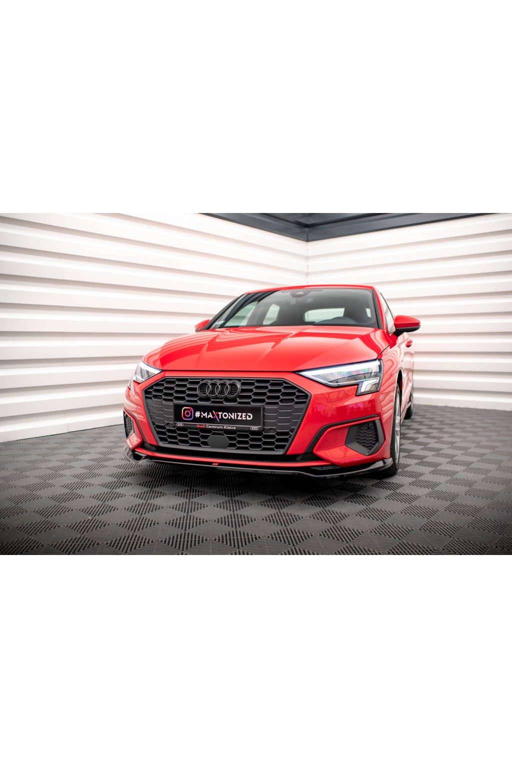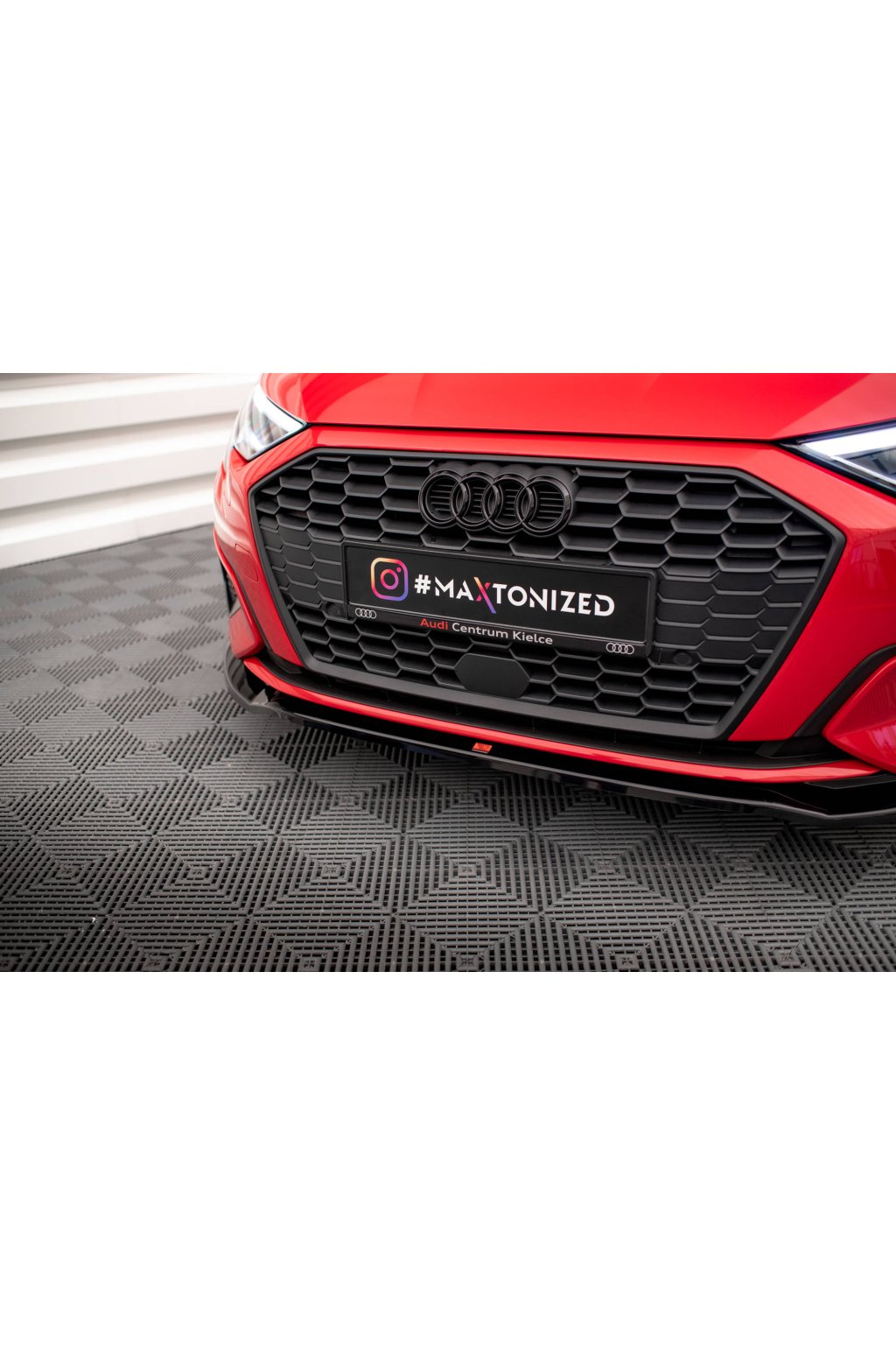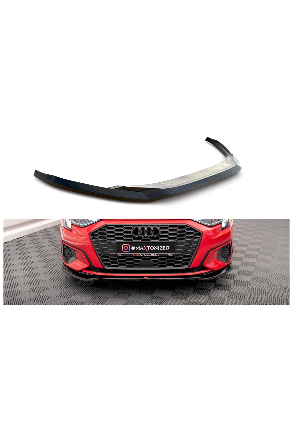 Maxton Design spoiler pod přední nárazník ver.2 pro vozidlo Audi A3 8Y . Povrchová úprava spoileru černý lesklý plast ABS.