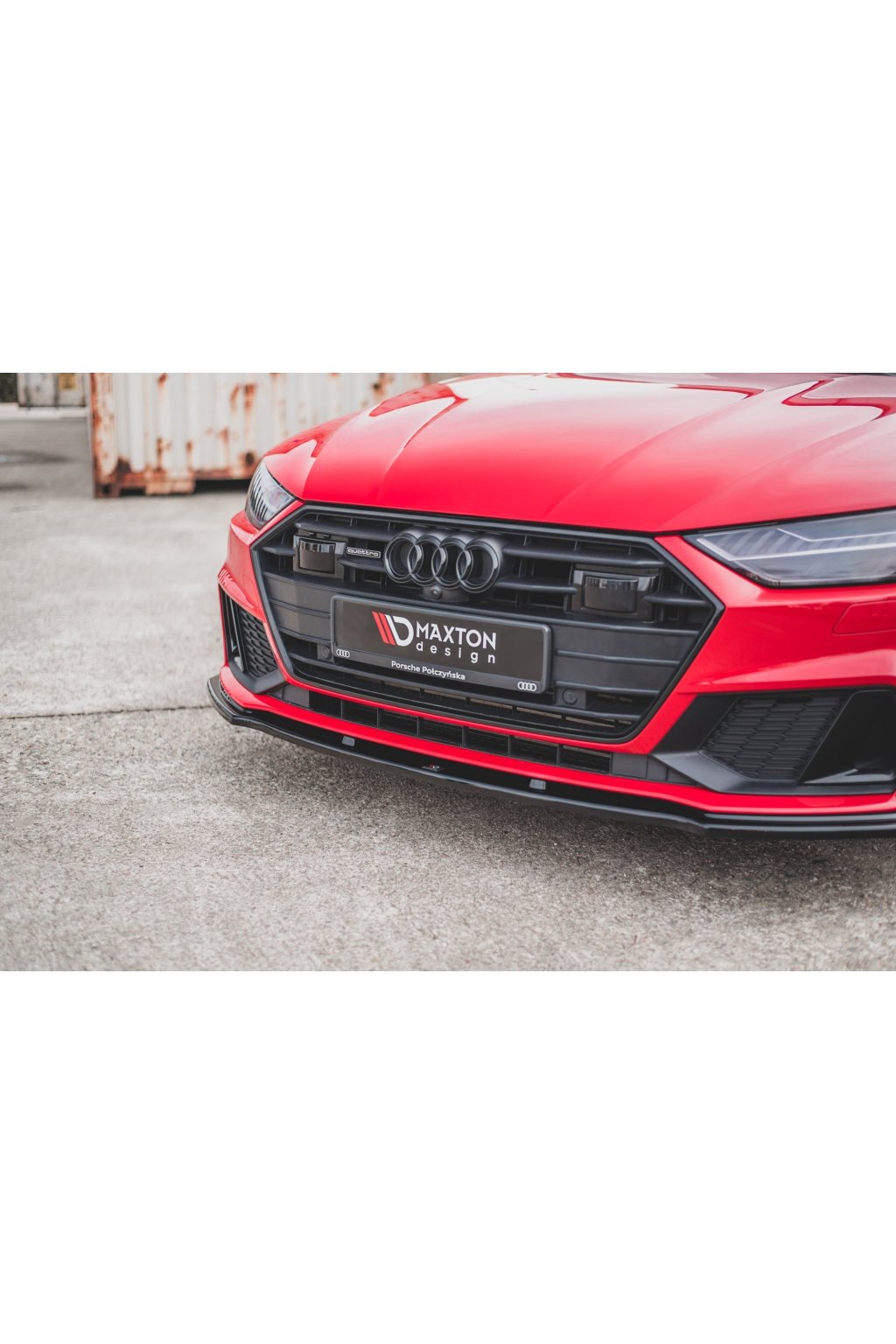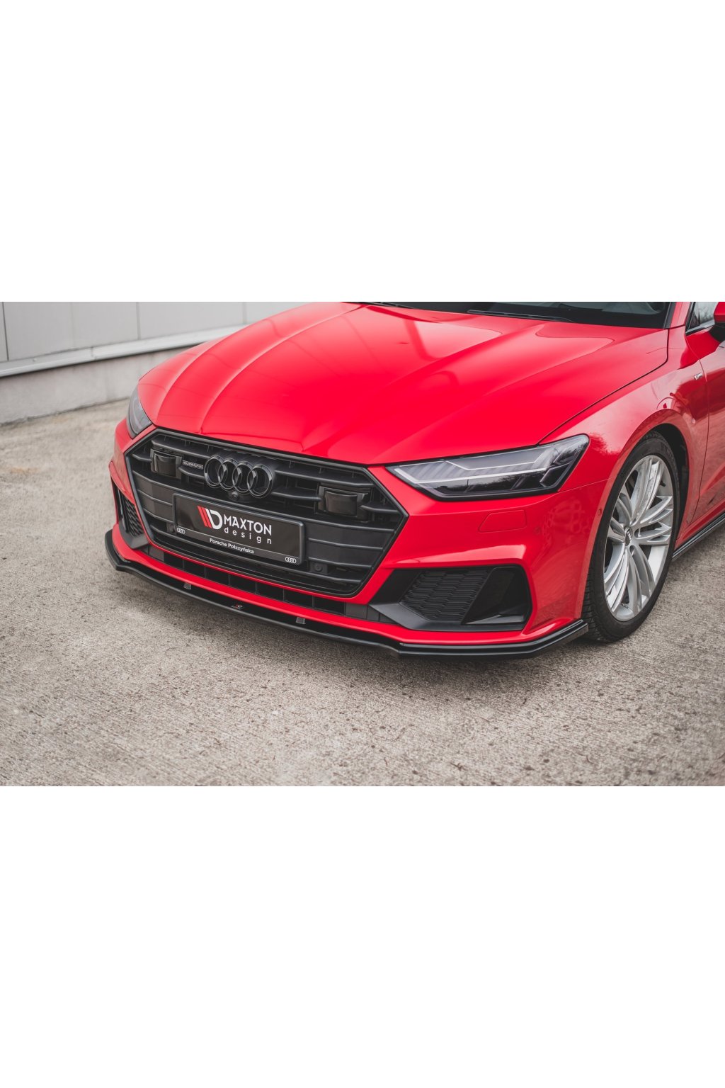 Maxton Design spoiler pod přední nárazník ver.2 pro vozidlo Audi A7 C8 S-Line . Povrchová úprava spoileru černý lesklý plast ABS.