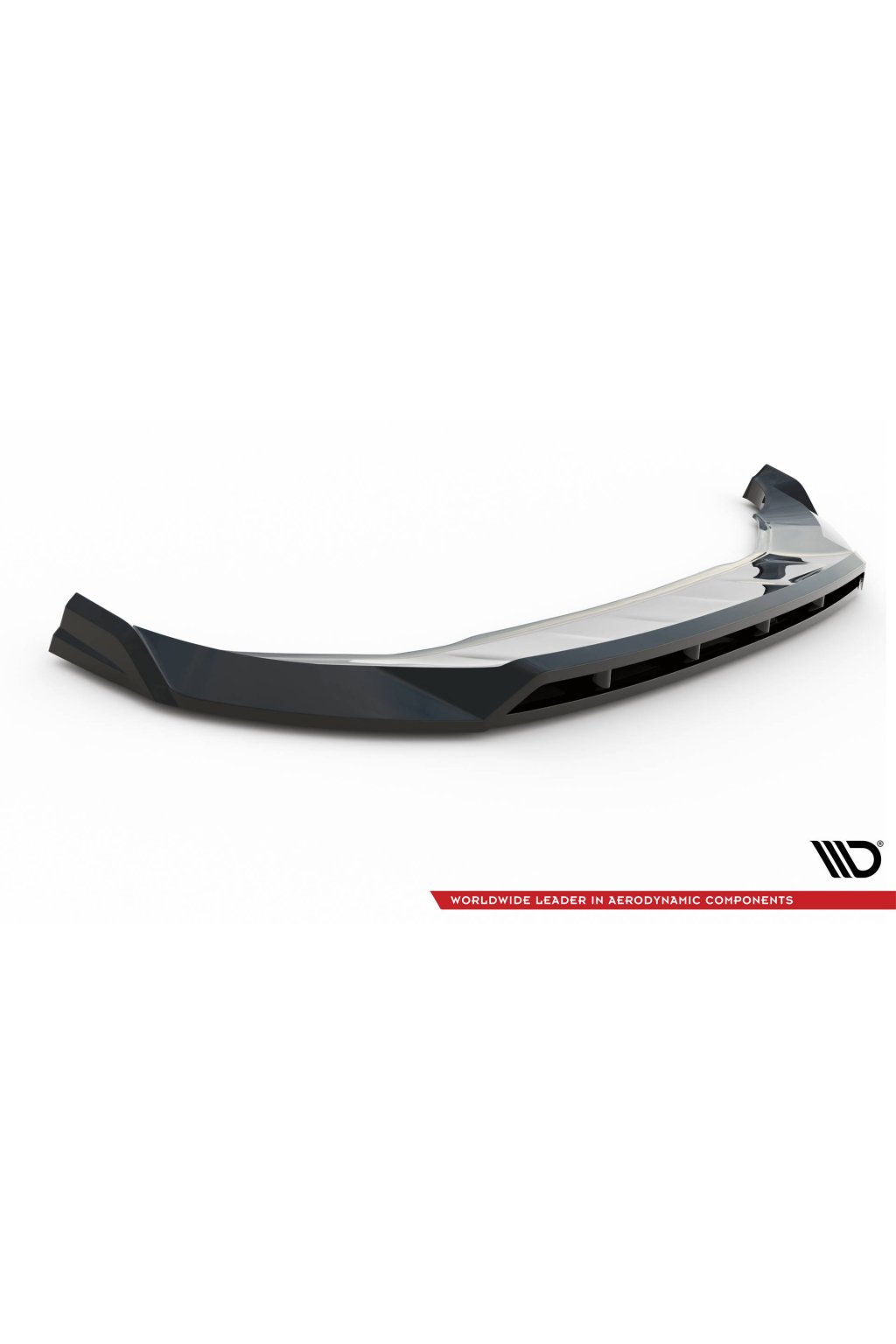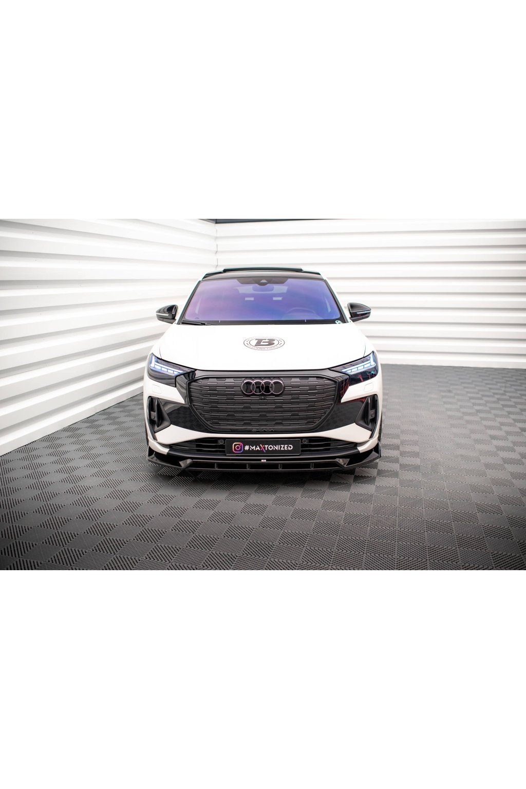 Maxton Design spoiler pod přední nárazník ver.2 pro vozidlo Audi Q4 e-tron Mk1 Sportback . Povrchová úprava spoileru černý lesklý plast ABS.