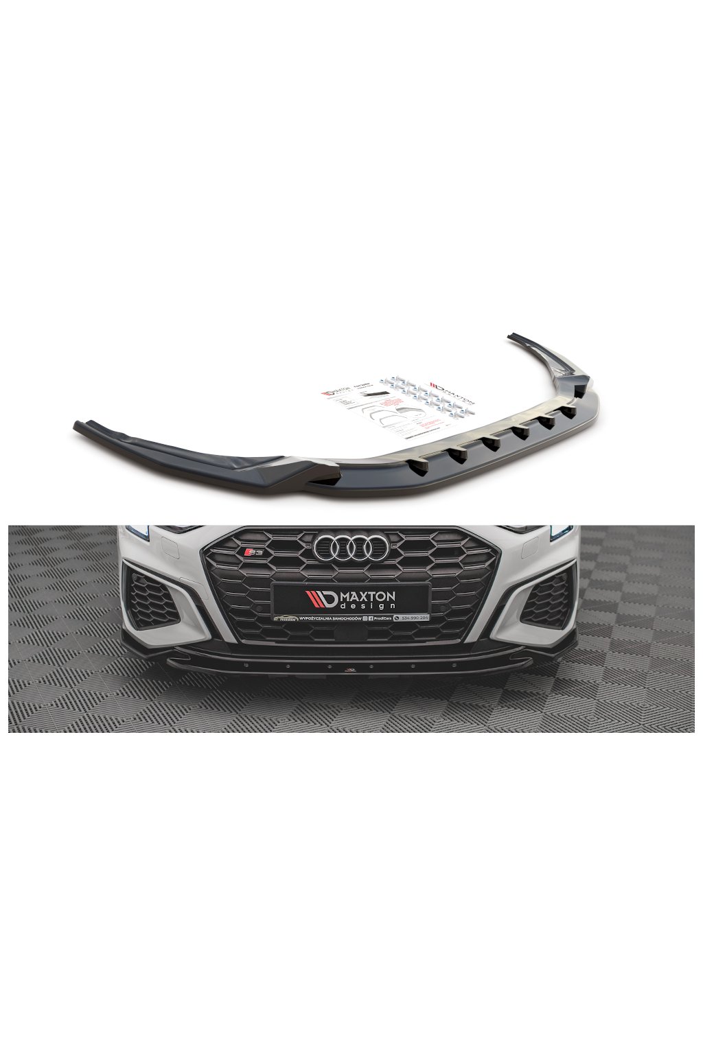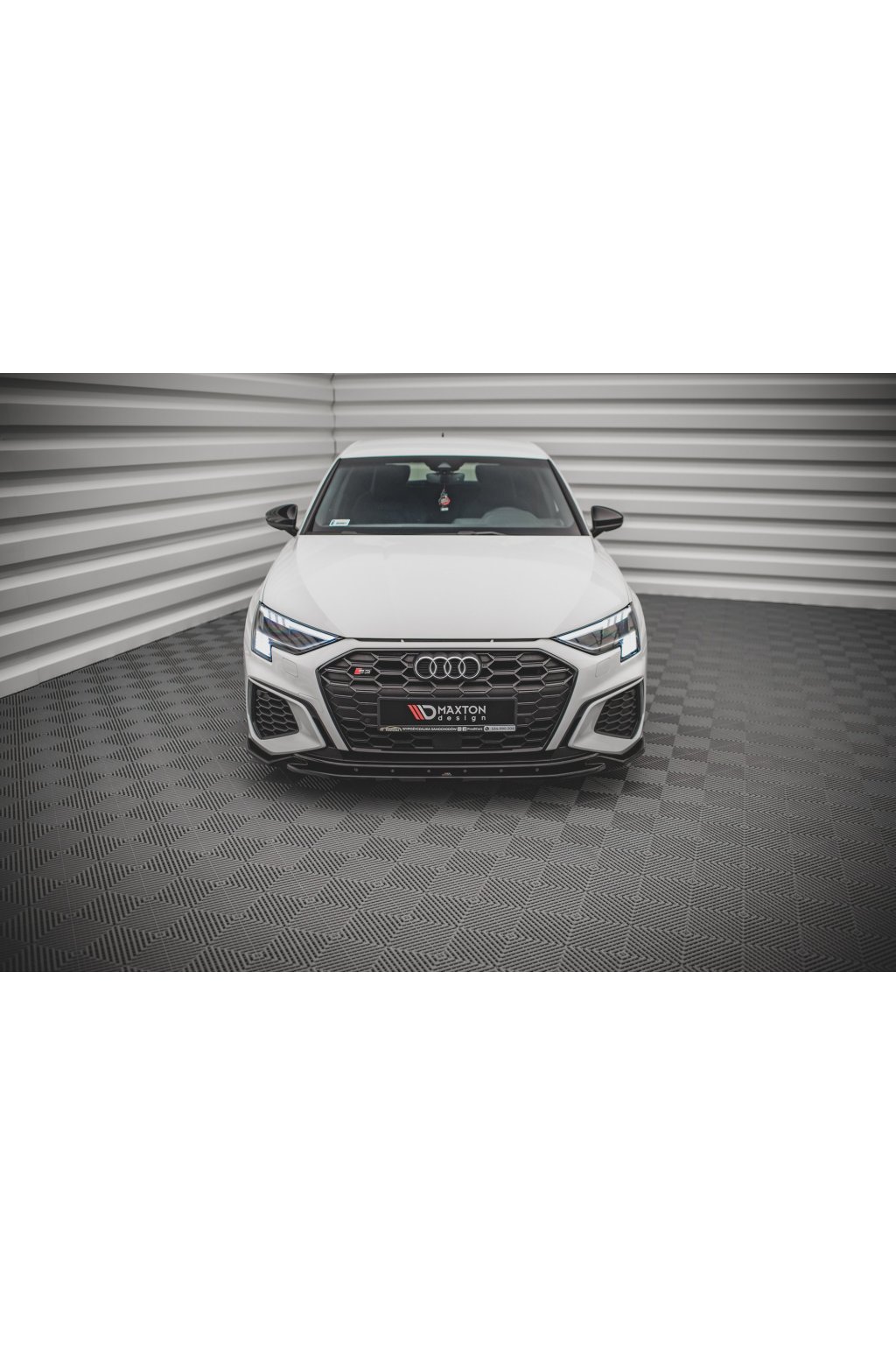 Maxton Design spoiler pod přední nárazník ver.2 pro vozidlo Audi S3 8Y . Povrchová úprava spoileru černý lesklý plast ABS.
