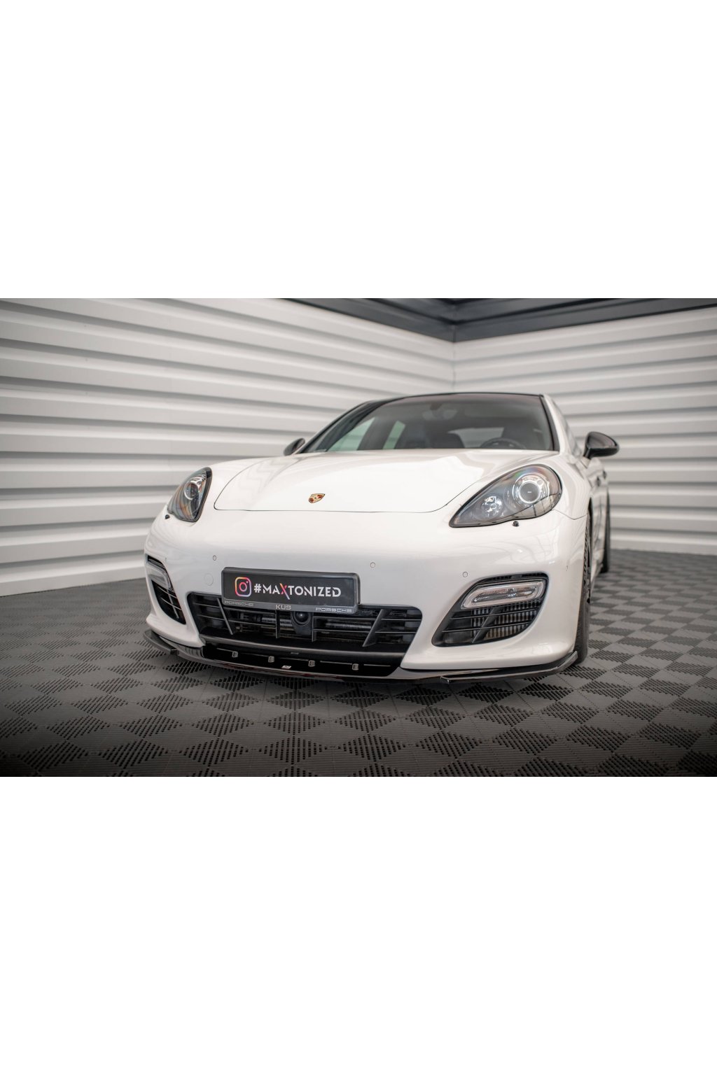 Maxton Design spoiler pod přední nárazník ver.2 pro vozidlo Porsche Panamera 970 Turbo . Povrchová úprava spoileru černý lesklý plast ABS.