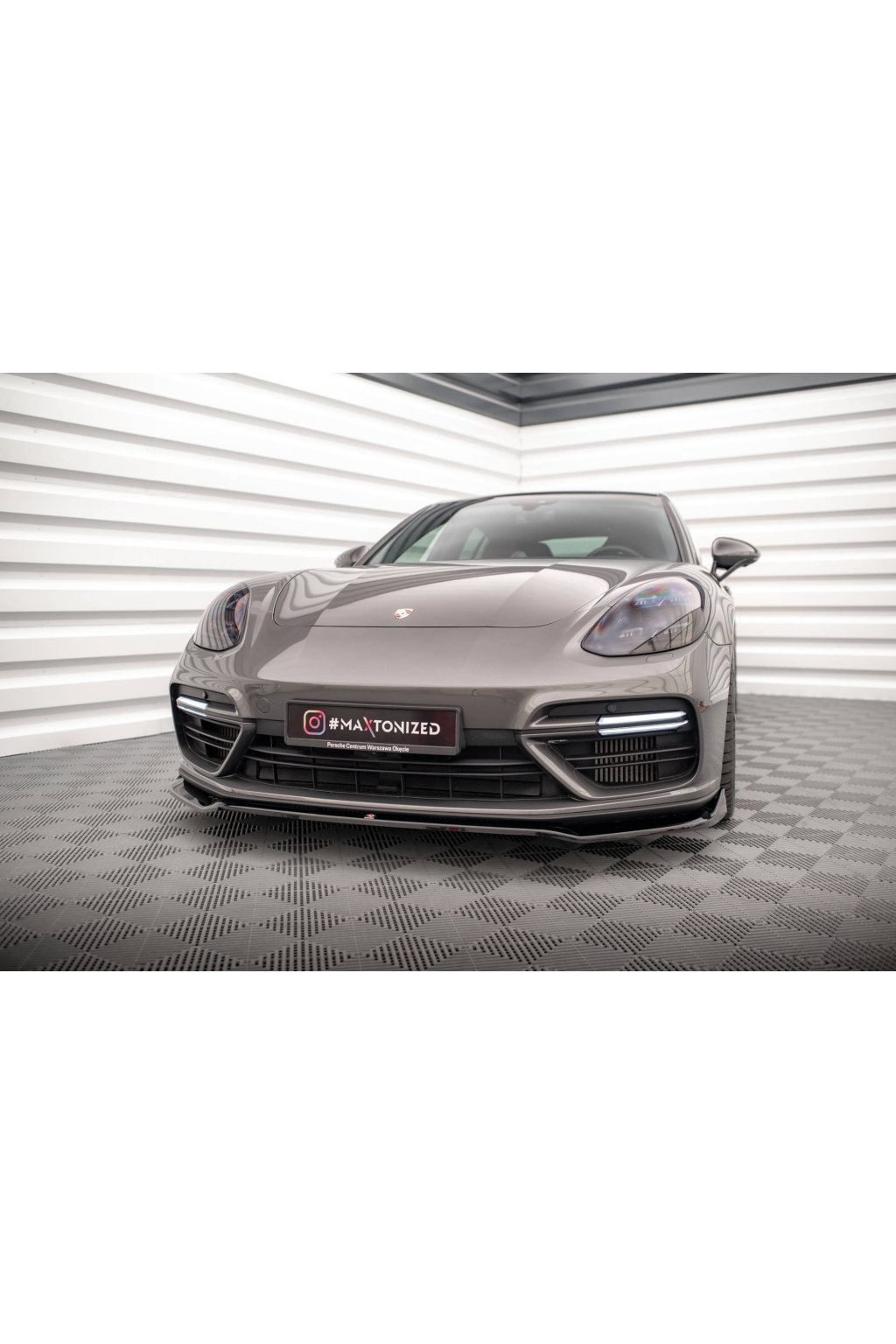 Maxton Design spoiler pod přední nárazník ver.2 pro Porsche Panamera 971 E-Hybrid, černý lesklý plast ABS