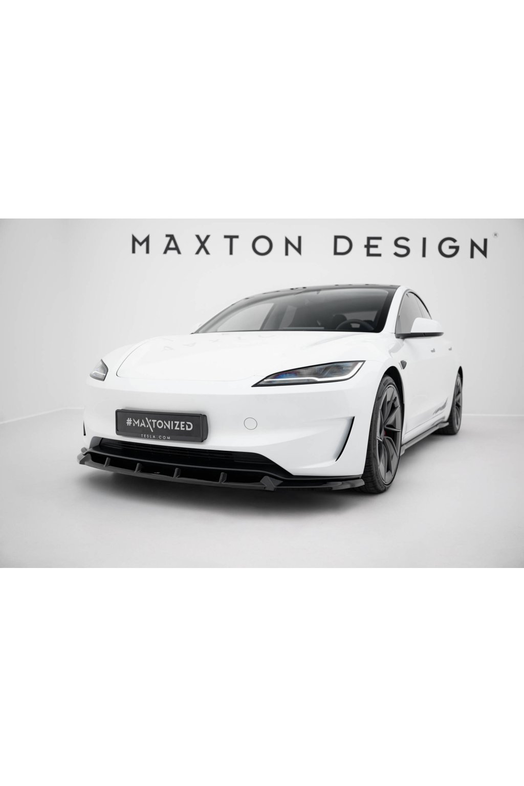 Maxton Design spoiler pod přední nárazník ver.2 pro Tesla Model 3 Mk1 Project Highland Facelift, černý lesklý plast ABS, Performance