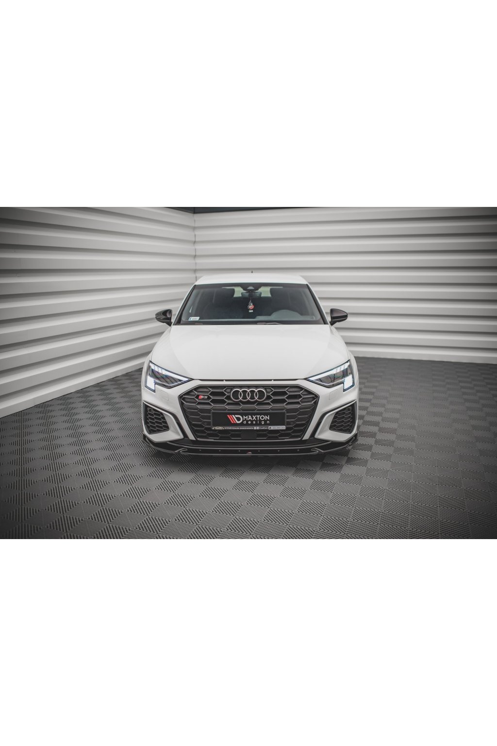 Maxton Design spoiler pod přední nárazník ver.3 pro vozidlo Audi A3 8Y . Povrchová úprava spoileru černý lesklý plast ABS.