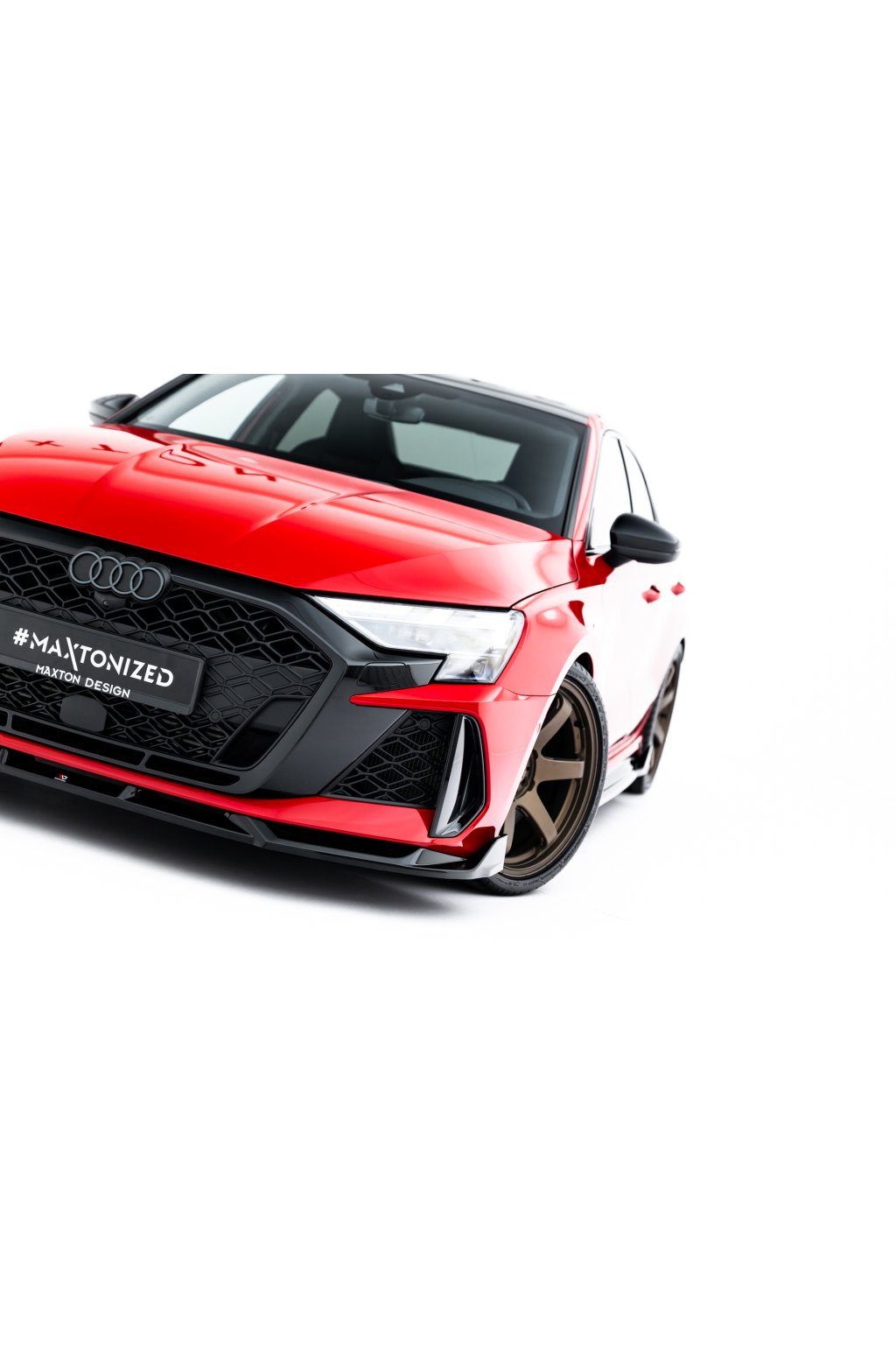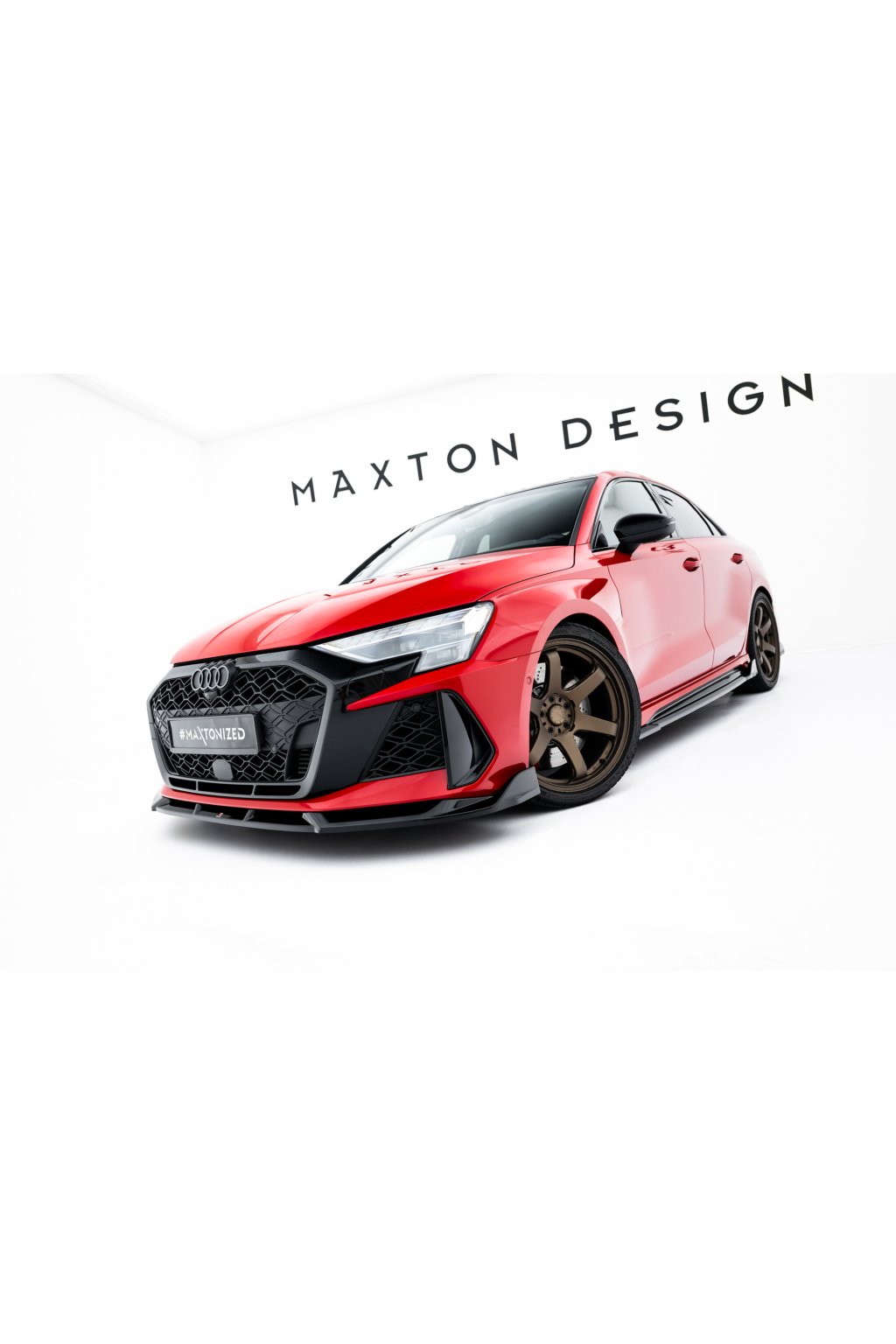 Maxton Design spoiler pod přední nárazník ver.3 pro Audi RS3 8Y Facelift, černý lesklý plast ABS, Sedan