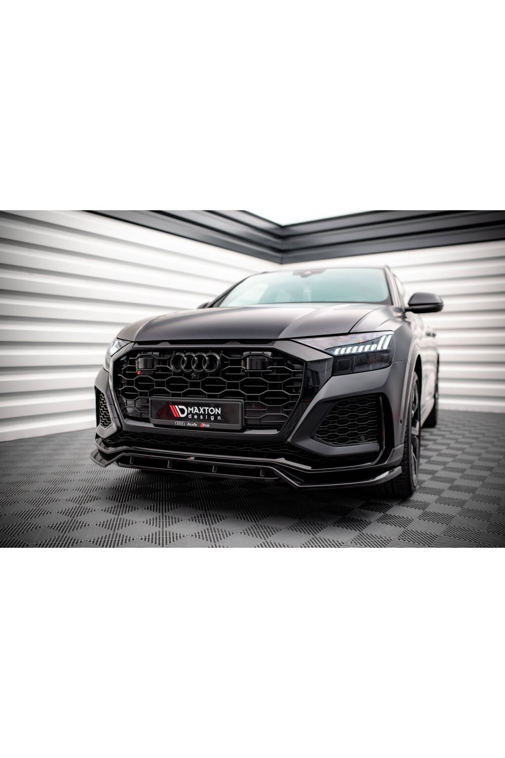 Maxton Design spoiler pod přední nárazník ver.3 pro vozidlo Audi RSQ8 Mk1 . Povrchová úprava spoileru černý lesklý plast ABS.
