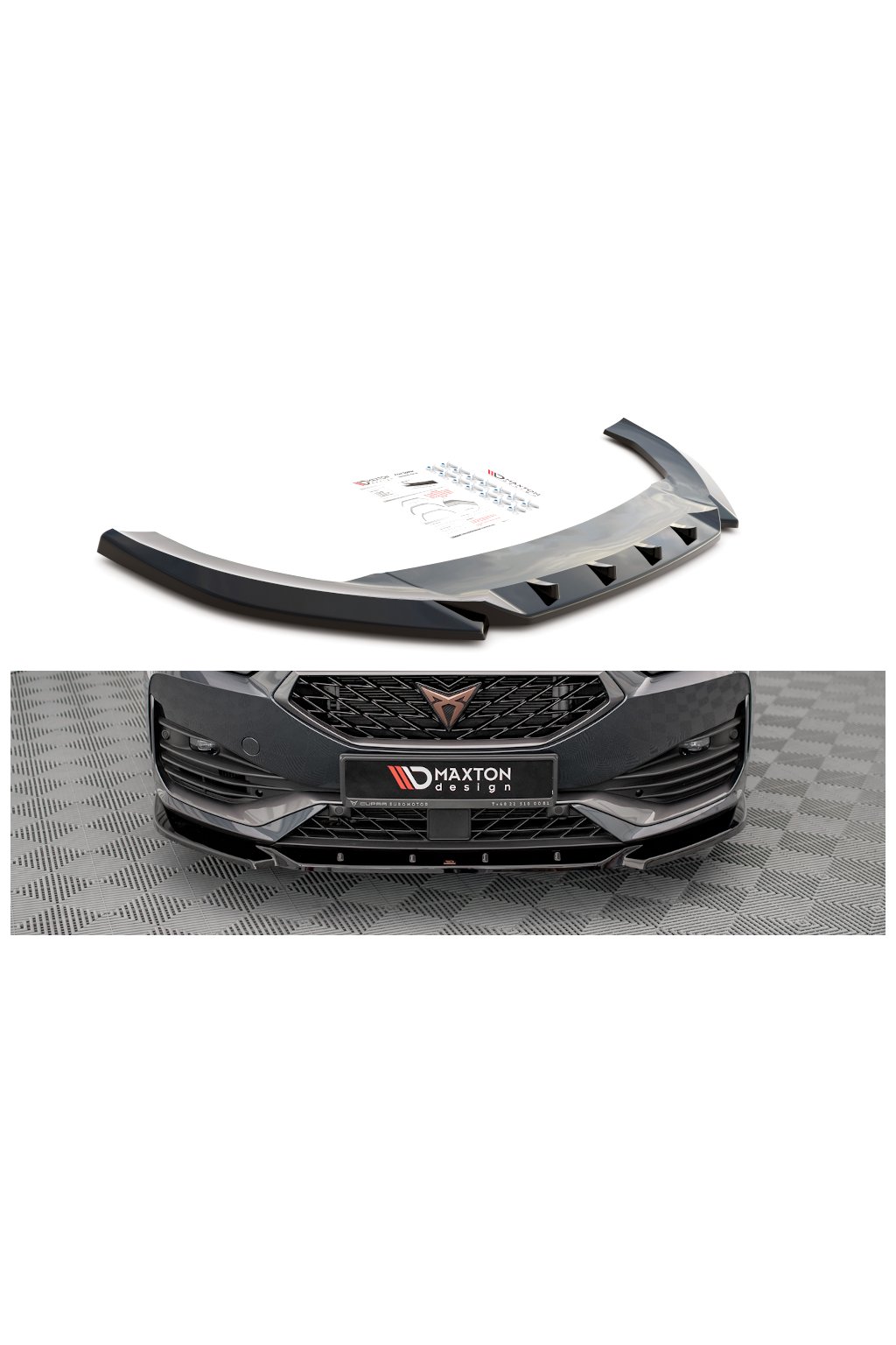 Maxton Design spoiler pod přední nárazník ver.3 pro vozidlo Cupra Leon . Povrchová úprava spoileru černý lesklý plast ABS.