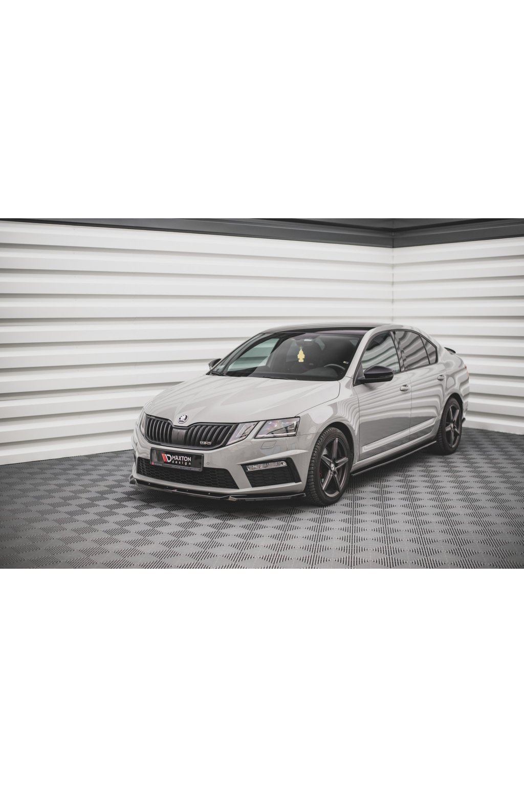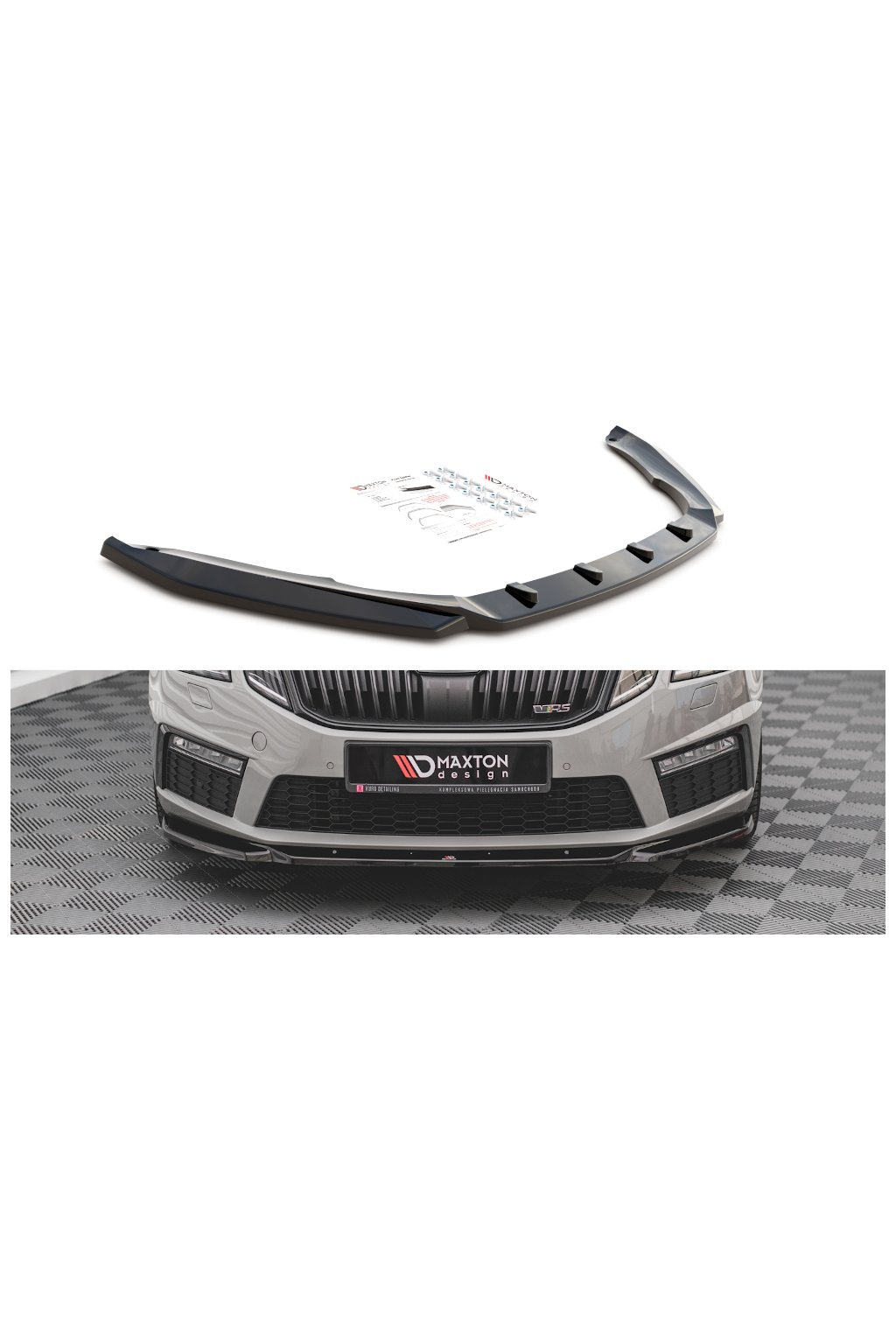 Maxton Design spoiler pod přední nárazník ver.3 pro vozidlo Škoda Octavia RS Facelift Mk3 . Povrchová úprava spoileru černý lesklý plast ABS.