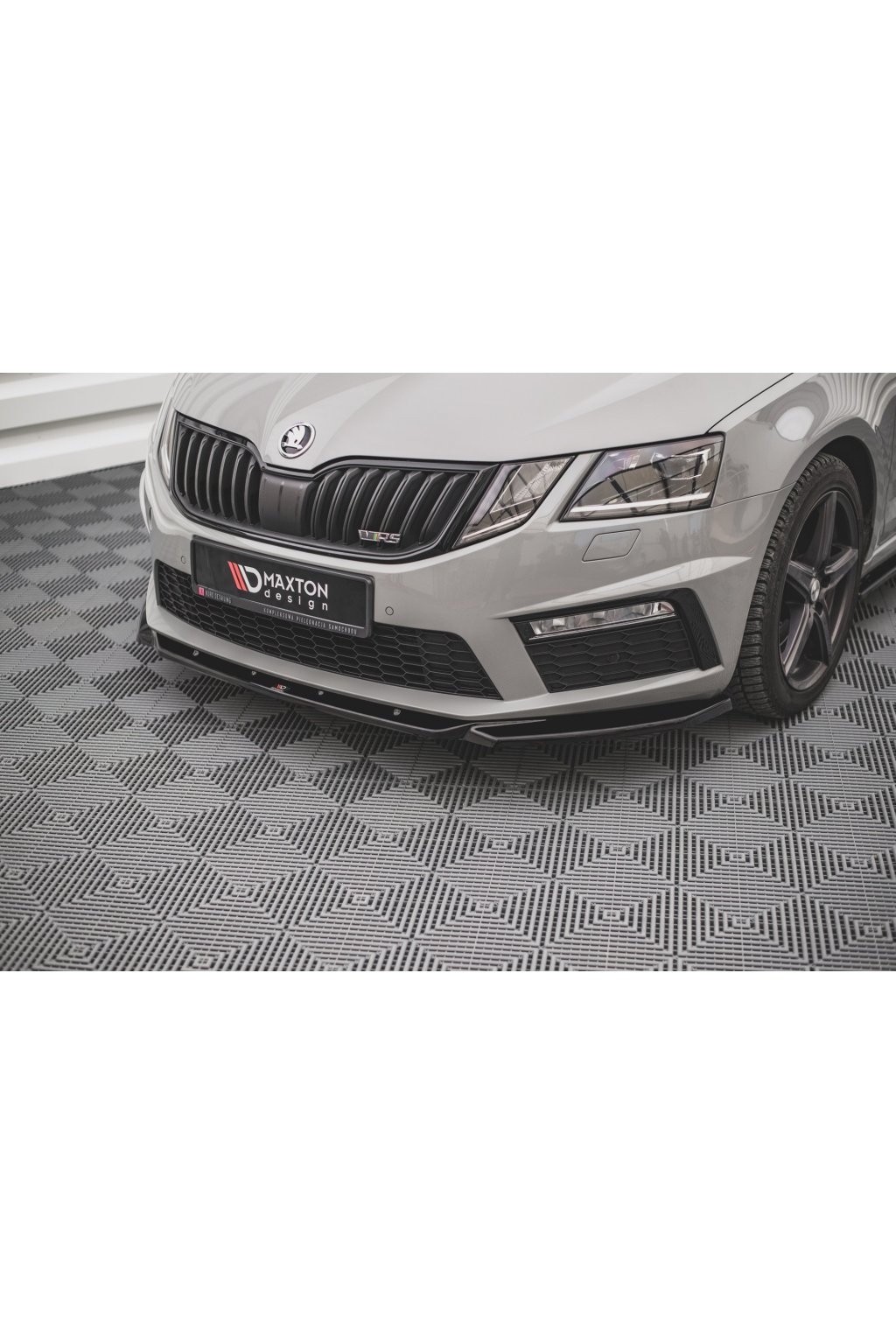 Maxton Design spoiler pod přední nárazník ver.3 pro Škoda Octavia RS Facelift Mk3, černý lesklý plast ABS