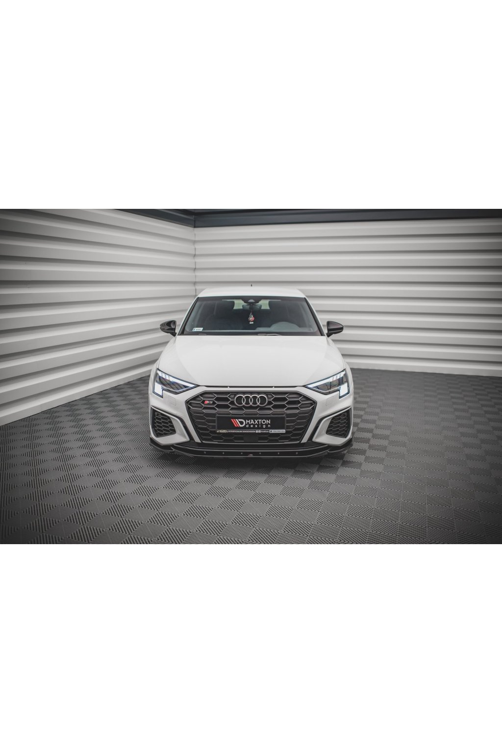 Maxton Design spoiler pod přední nárazník ver.4 pro vozidlo Audi A3 8Y . Povrchová úprava spoileru černý lesklý plast ABS.