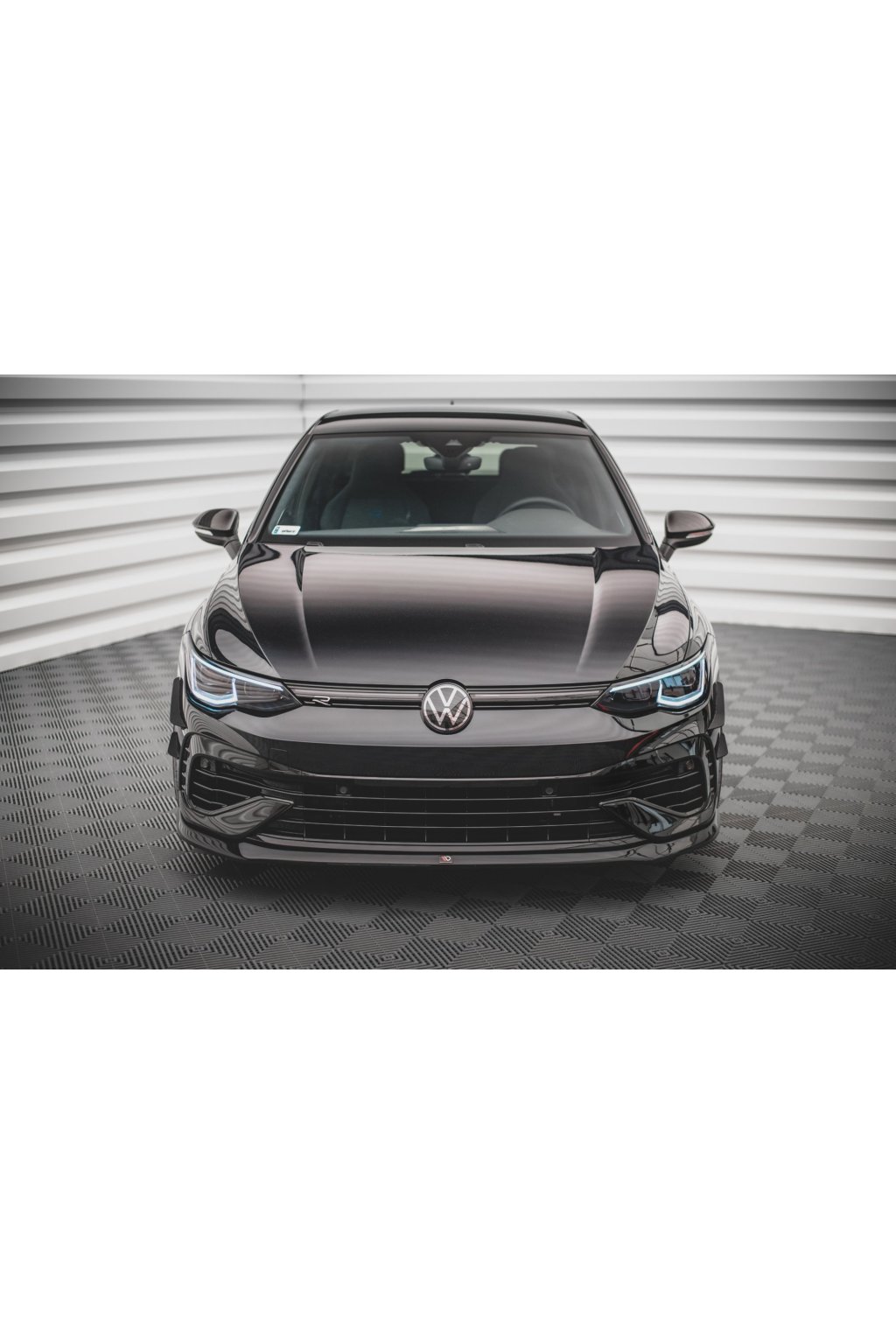 Maxton Design spoiler pod přední nárazník ver.5 pro vozidlo Volkswagen Golf R Mk8 . Povrchová úprava spoileru černý lesklý plast ABS.