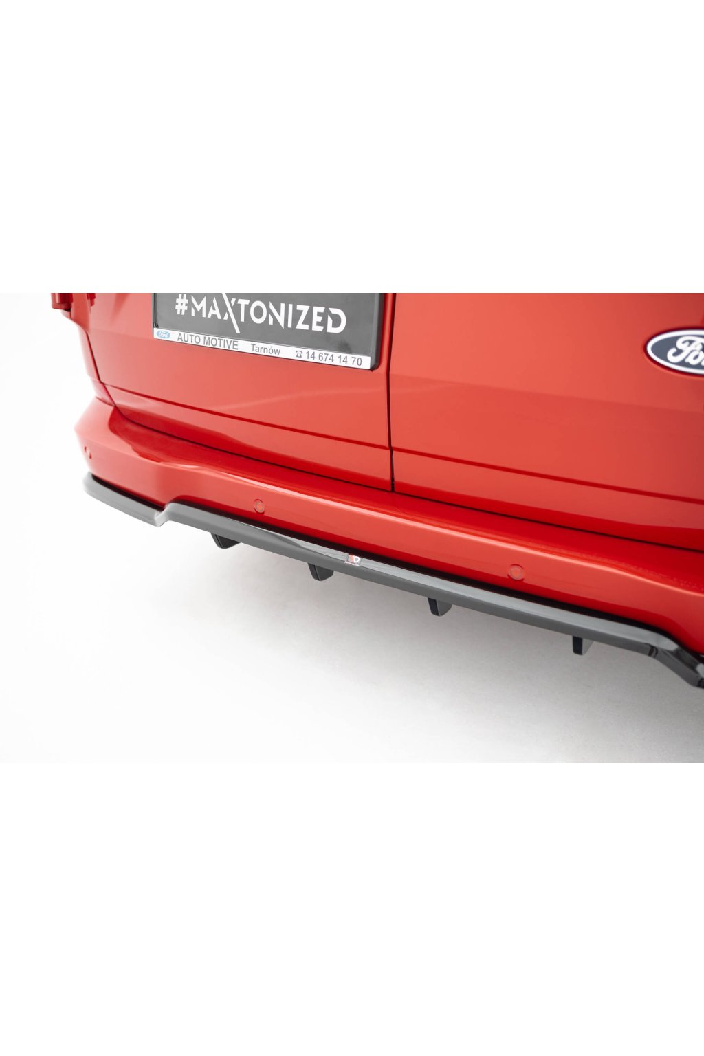 Maxton Design spoiler pod zadní nárazník s žebrováním pro Ford Transit Custom Mk2, černý lesklý plast ABS